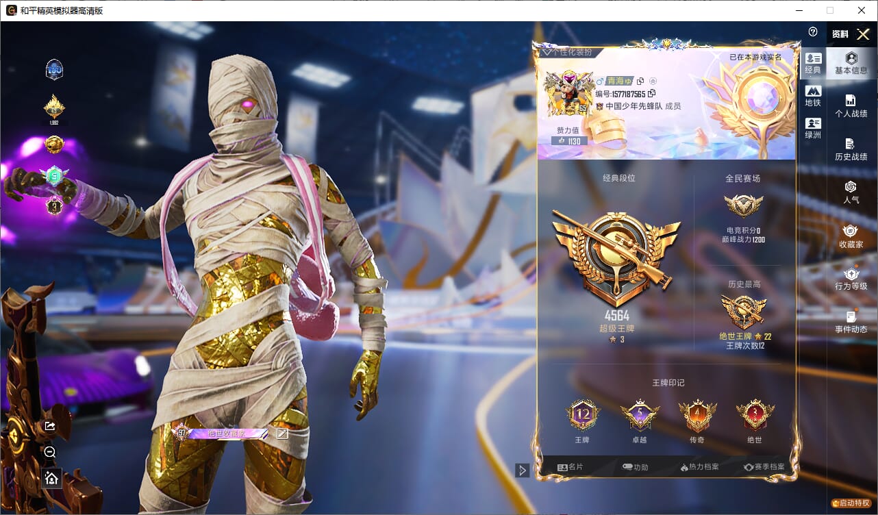 165套装/枪械4/装备243/载具2/战备131/王牌印记10/热力值604
