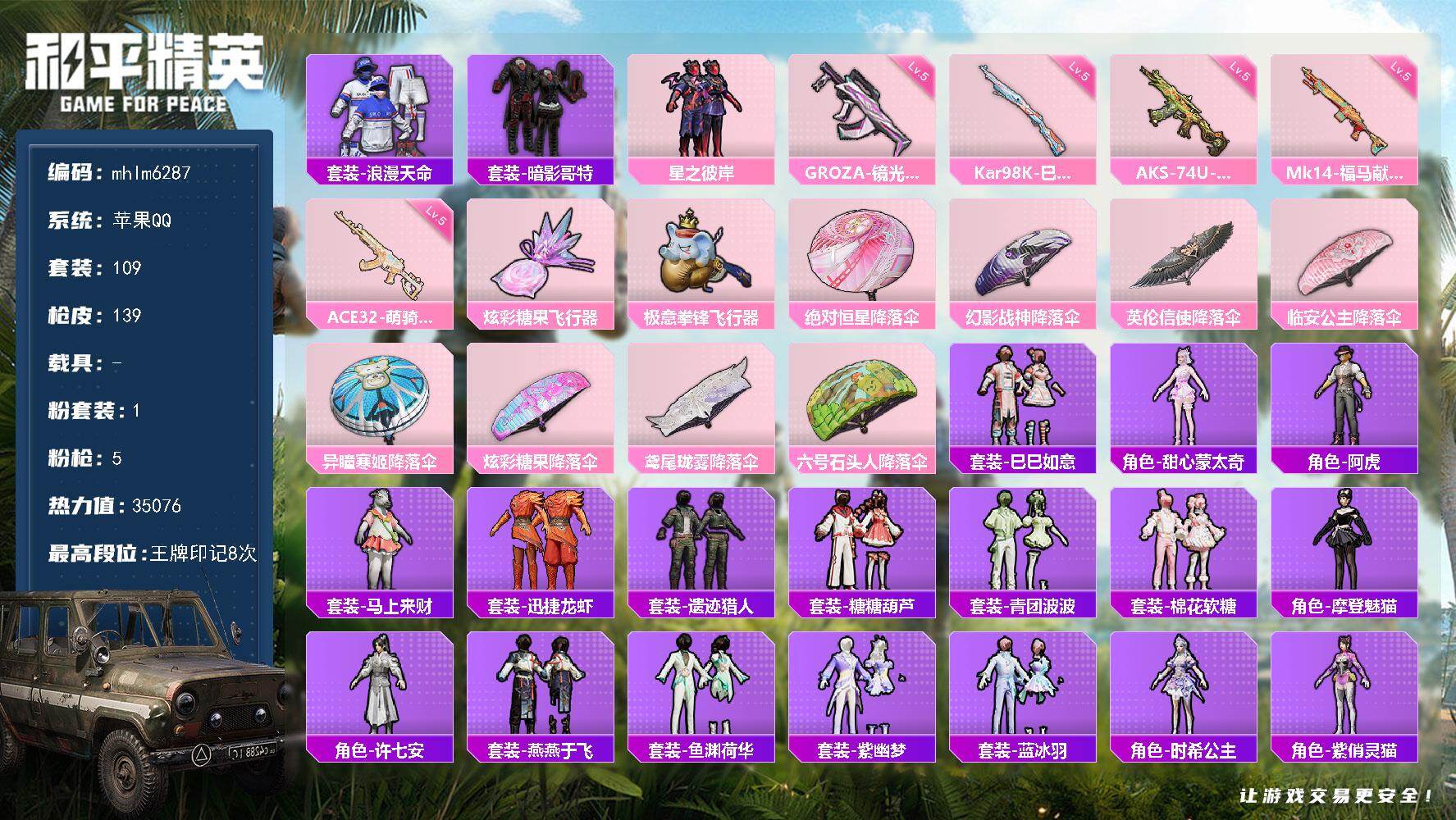 【mhlm6294】苹果 手Q-2神装-7粉装-9特效枪-8载具-5粉色飞行器