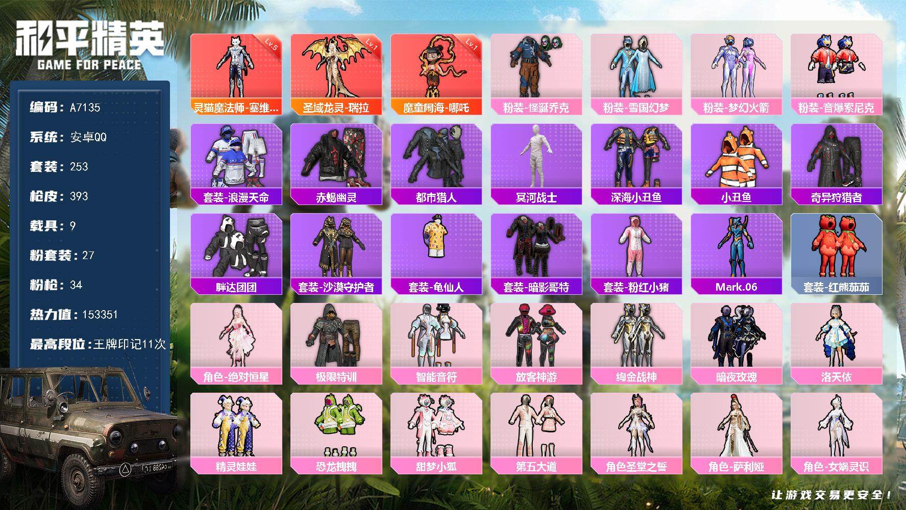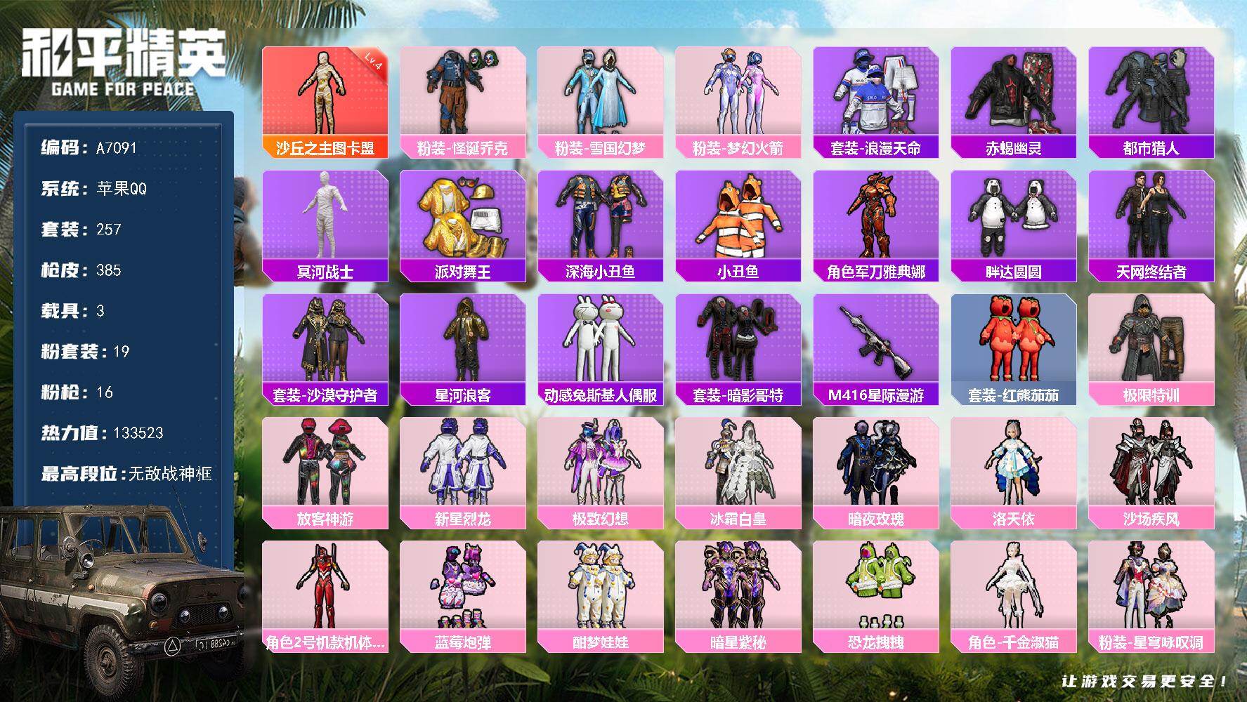 无敌战神框-1神装-19粉装-16特效枪-3载具