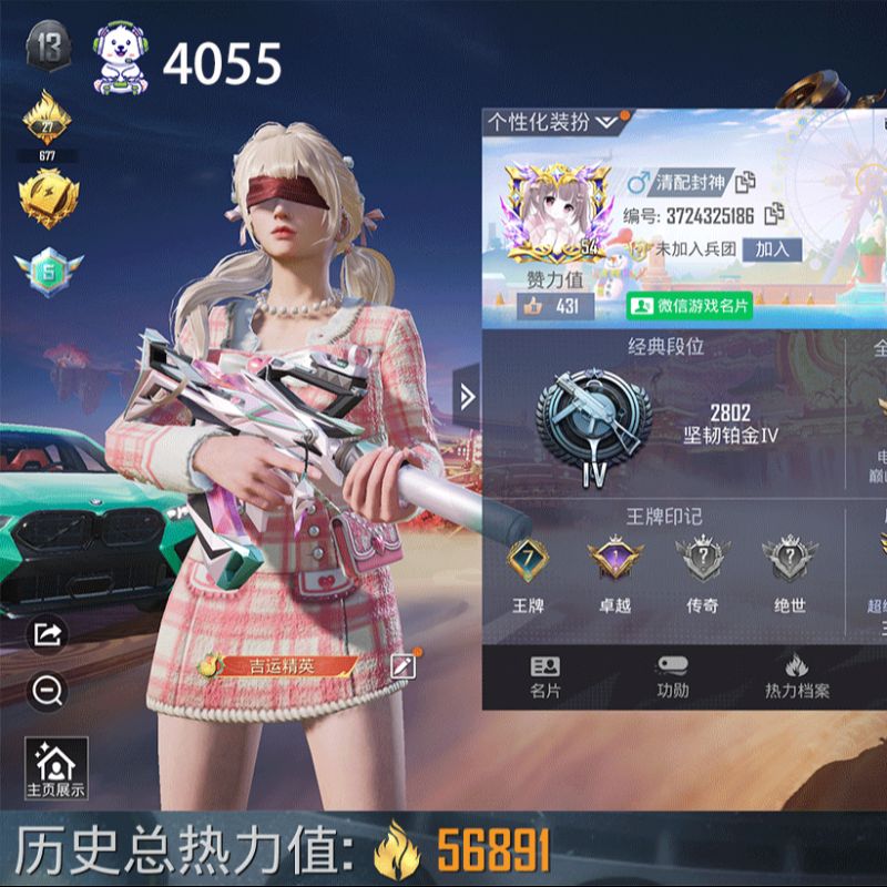 小丑女满级M4风花雪月13粉装9特效枪1集结舱
