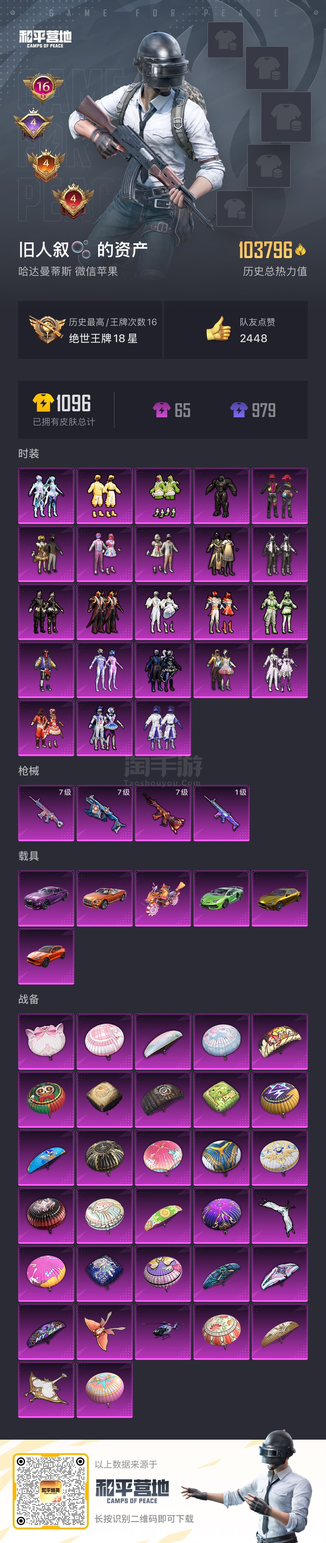 时装数: 782 载具数: 3 枪械数: 223 战备数: 171 热门装扮: