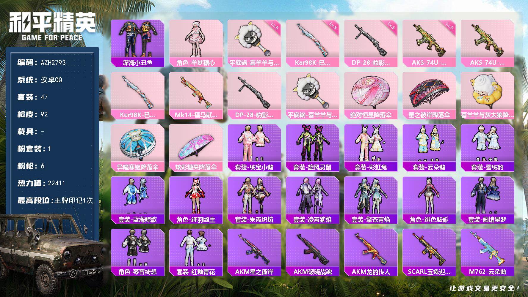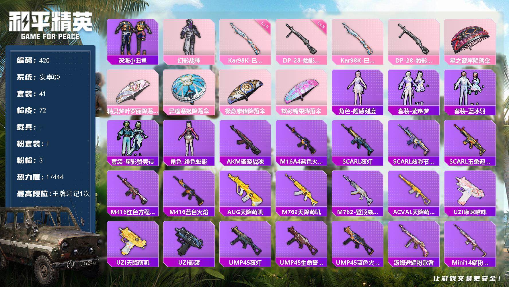 安卓 手Q-1粉装-3特效枪-0载具-0粉色飞行器-17444热力值-1王牌印