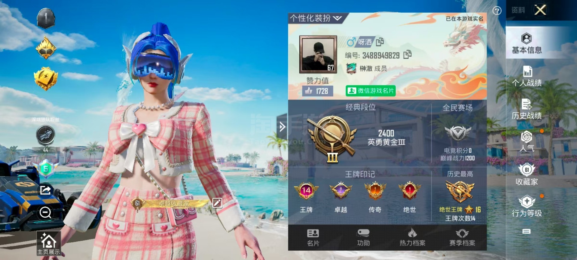 和平精英 安卓QQ 顶级面板 2红装 3级图卡盟 3台3币车 5级幻星粉玛莎 黄螳螂 木乃伊 雪