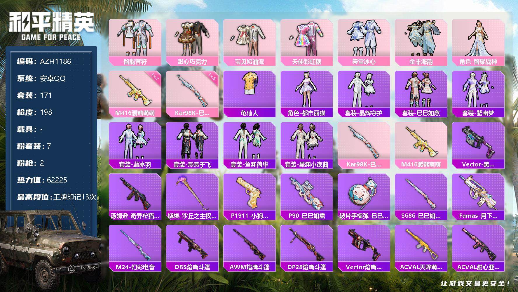 【商品标题】:安卓 手Q-1粉装-2特效枪-0载具-12474热力值-0印记-