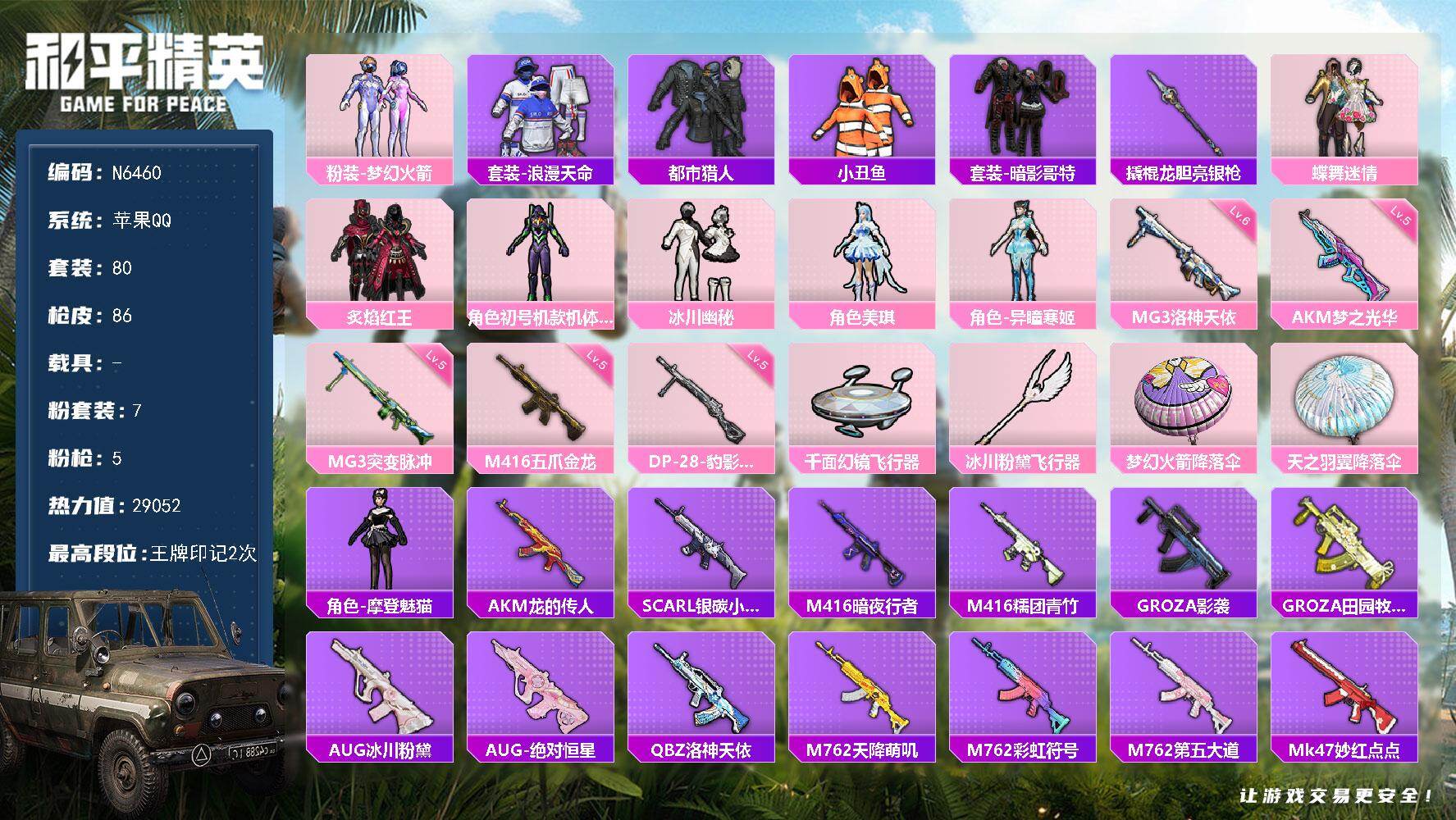7粉装-5特效枪-0载具-2粉色飞行器-29052热力值-2王牌印记-80套装-86枪皮