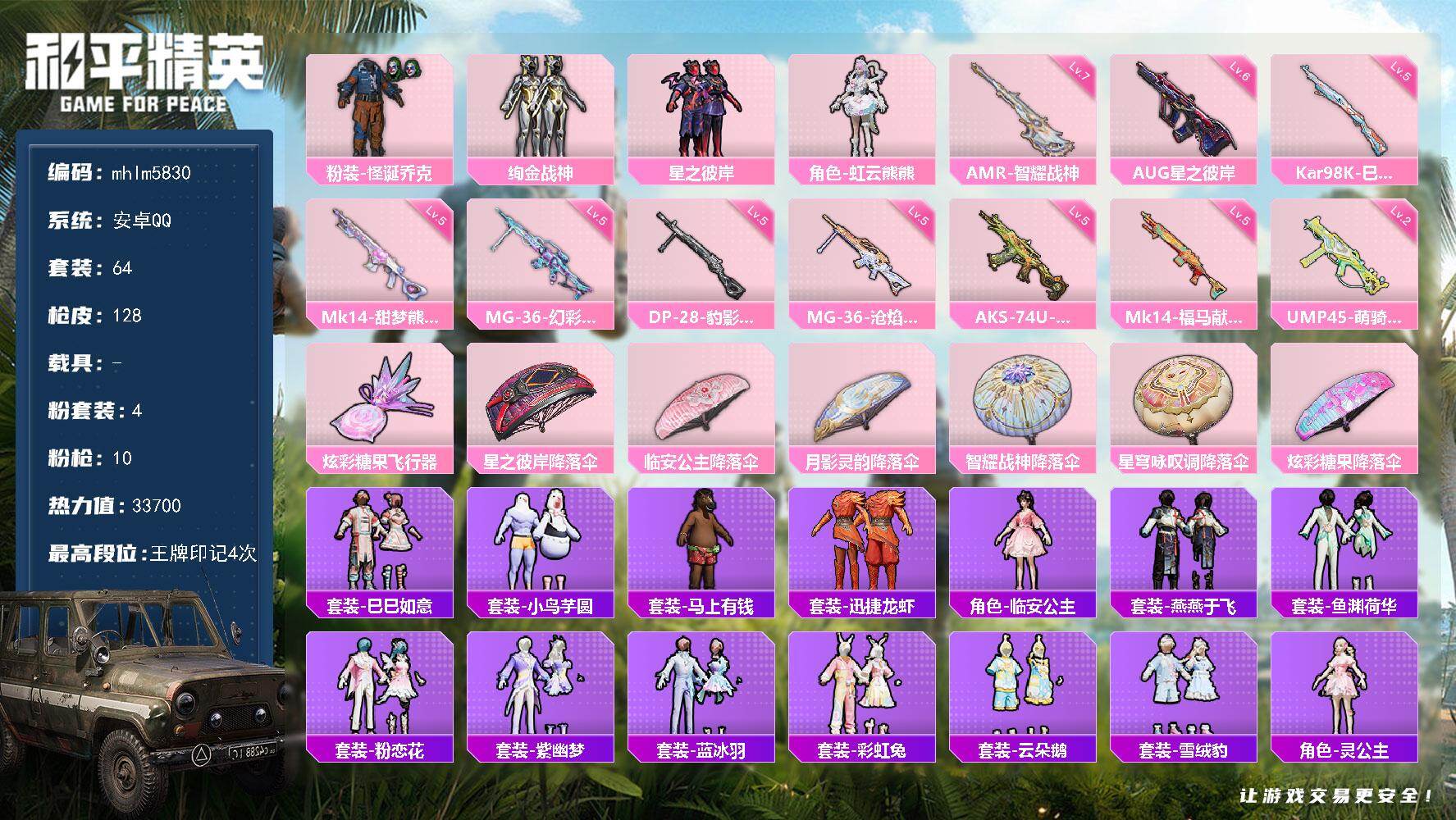 4粉装-10特效枪-0载具-1粉色飞行器-33700热力值-4王牌印