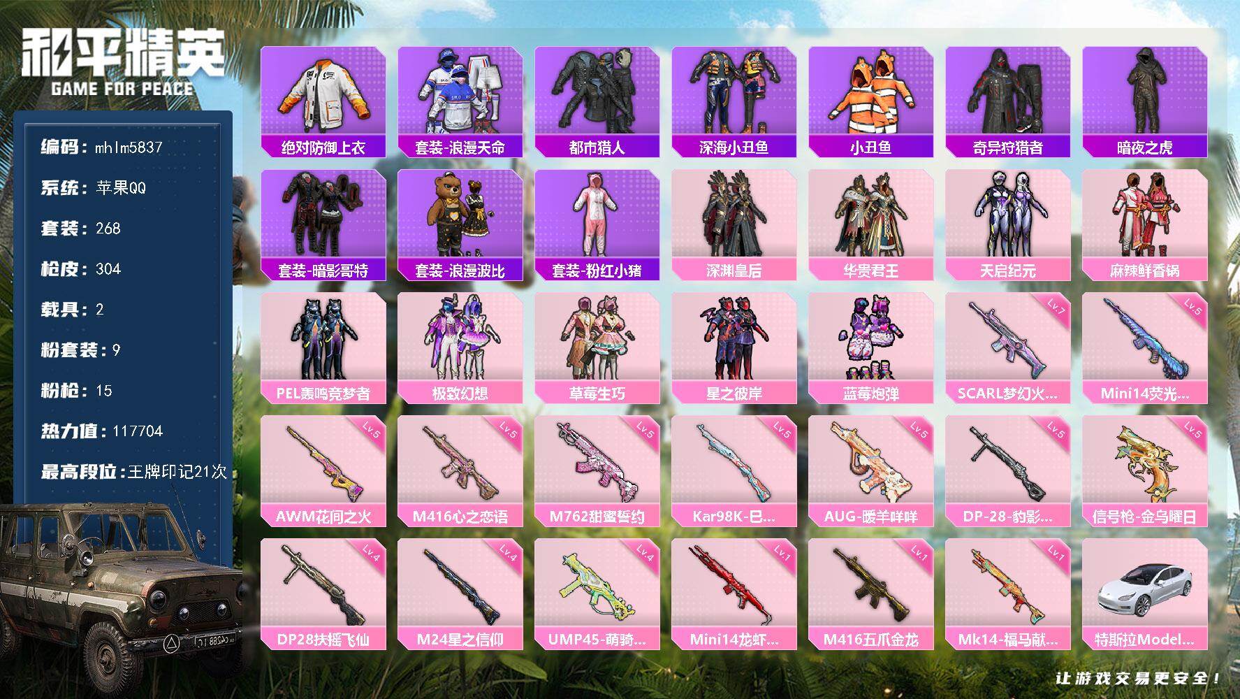 苹果手Q-22王牌印记-7粉装-17特效枪-热力值-272套装-402枪皮-2卓