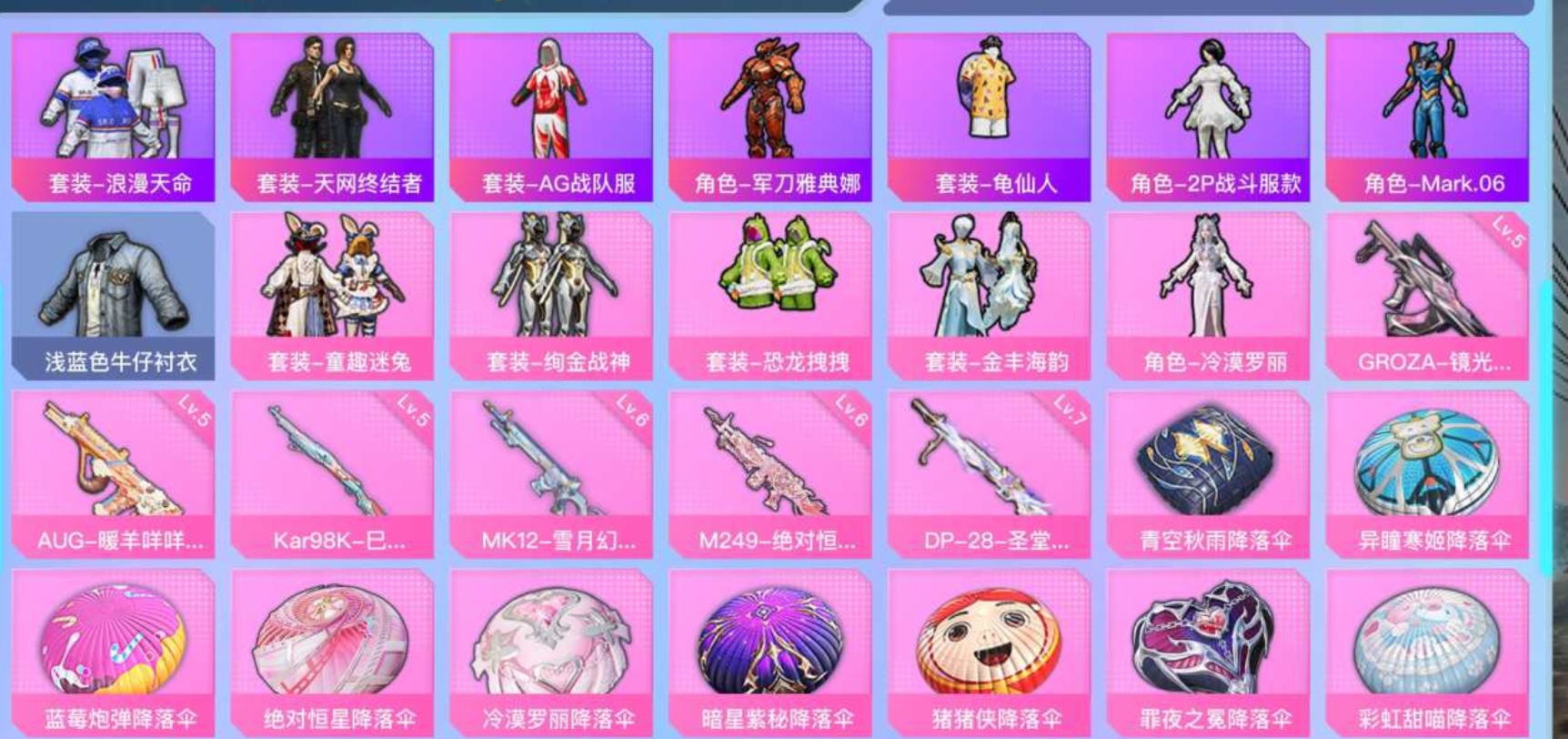 和平玛莎,王者v7,cf金v武器老玩家,金铲铲神话级英雄一个,部落12本,三角洲60级