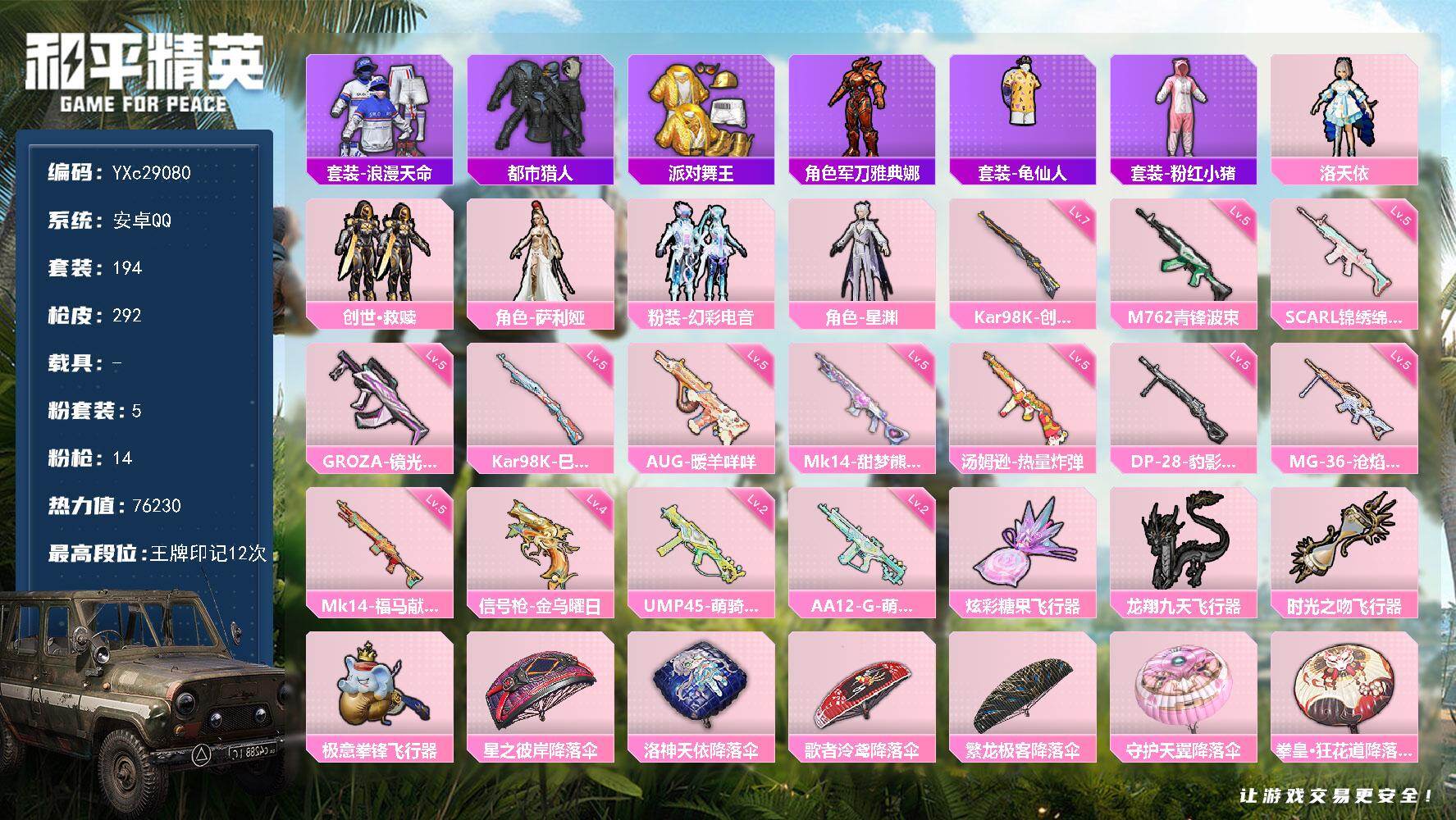 0载具-186套装-247枪皮-安卓手Q-可二次-精品小女