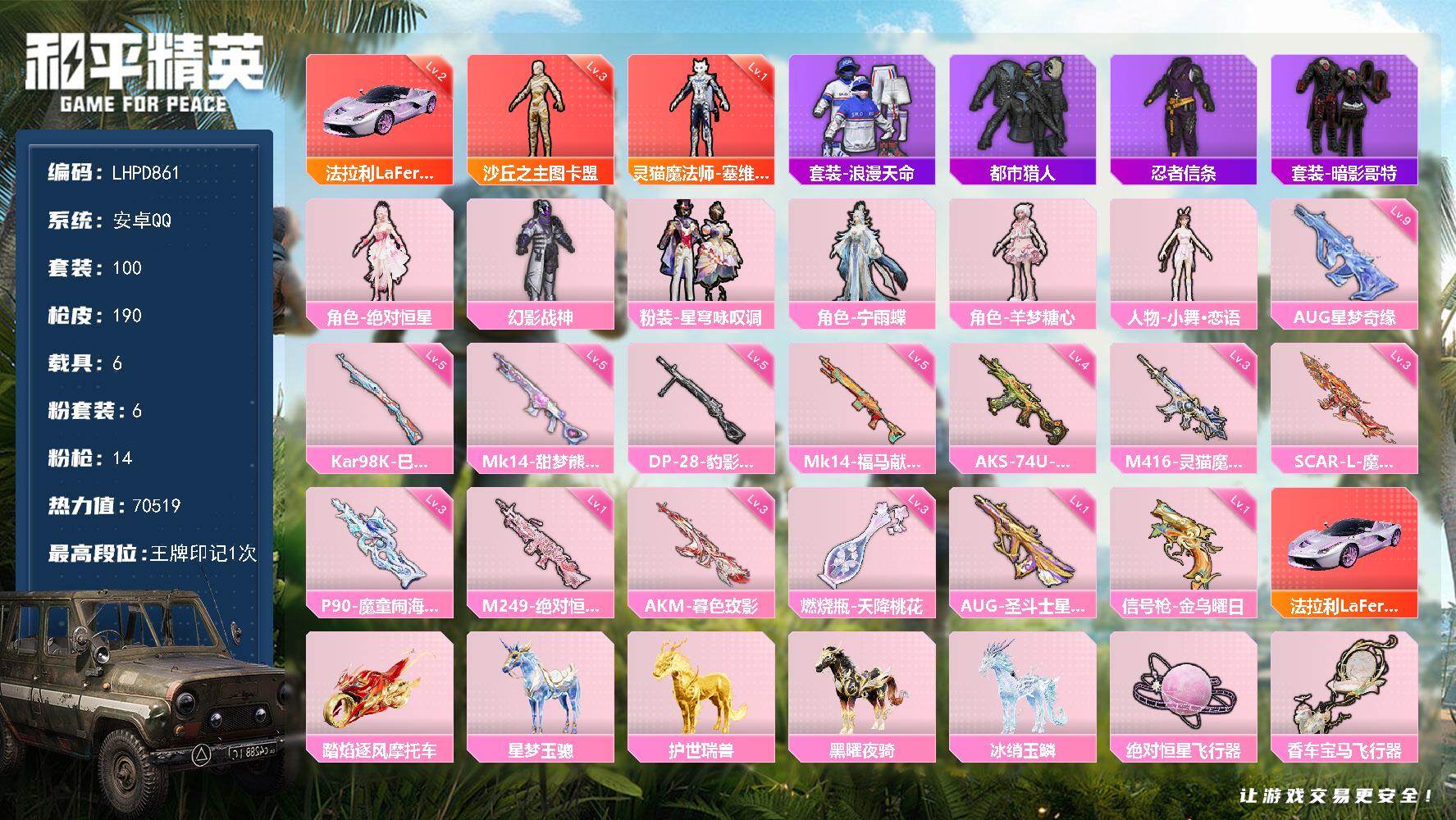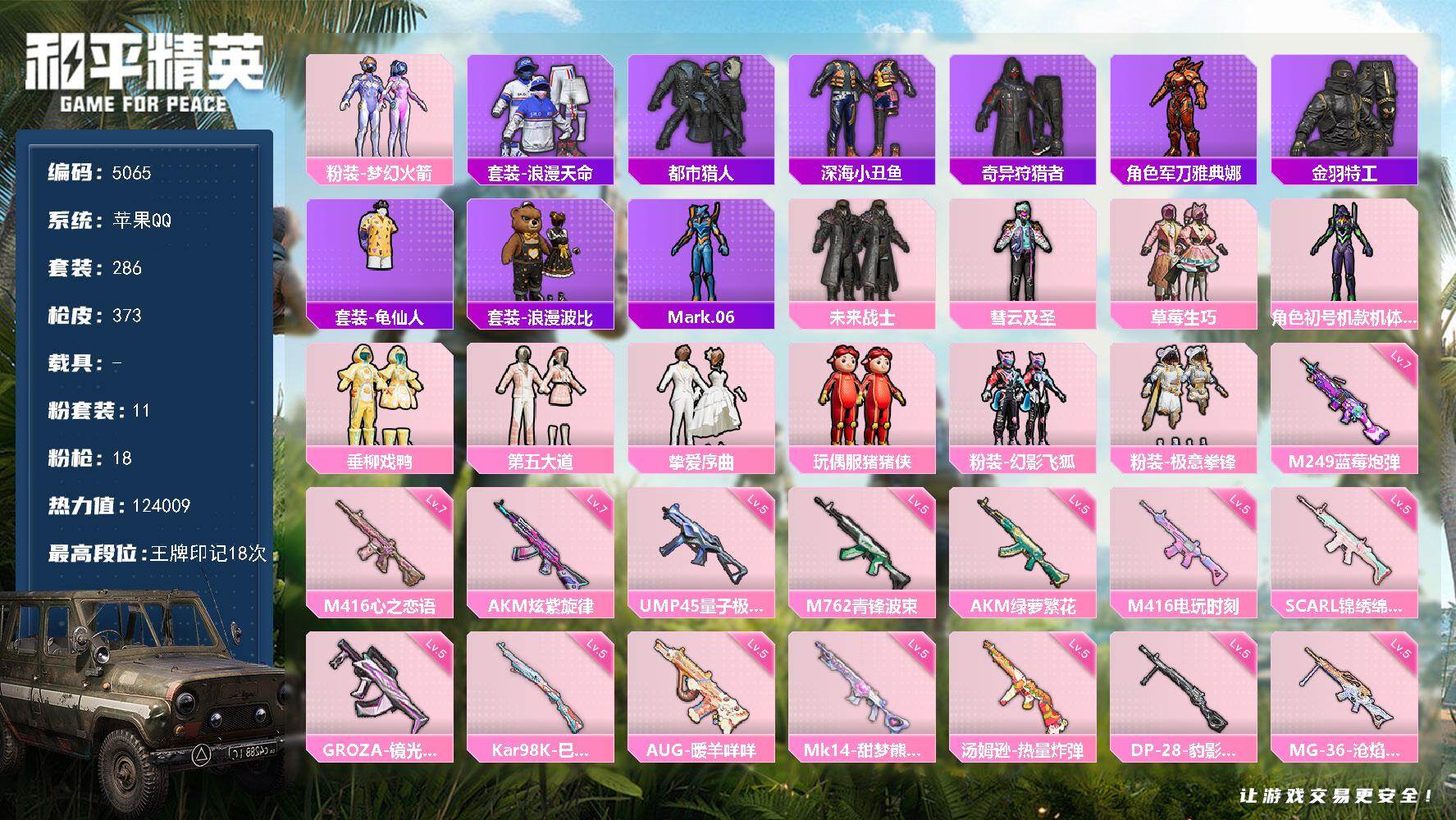 10粉装-12特效枪-188套装-280枪皮-18王牌印记-不朽星钻Ⅴ-81194热力值