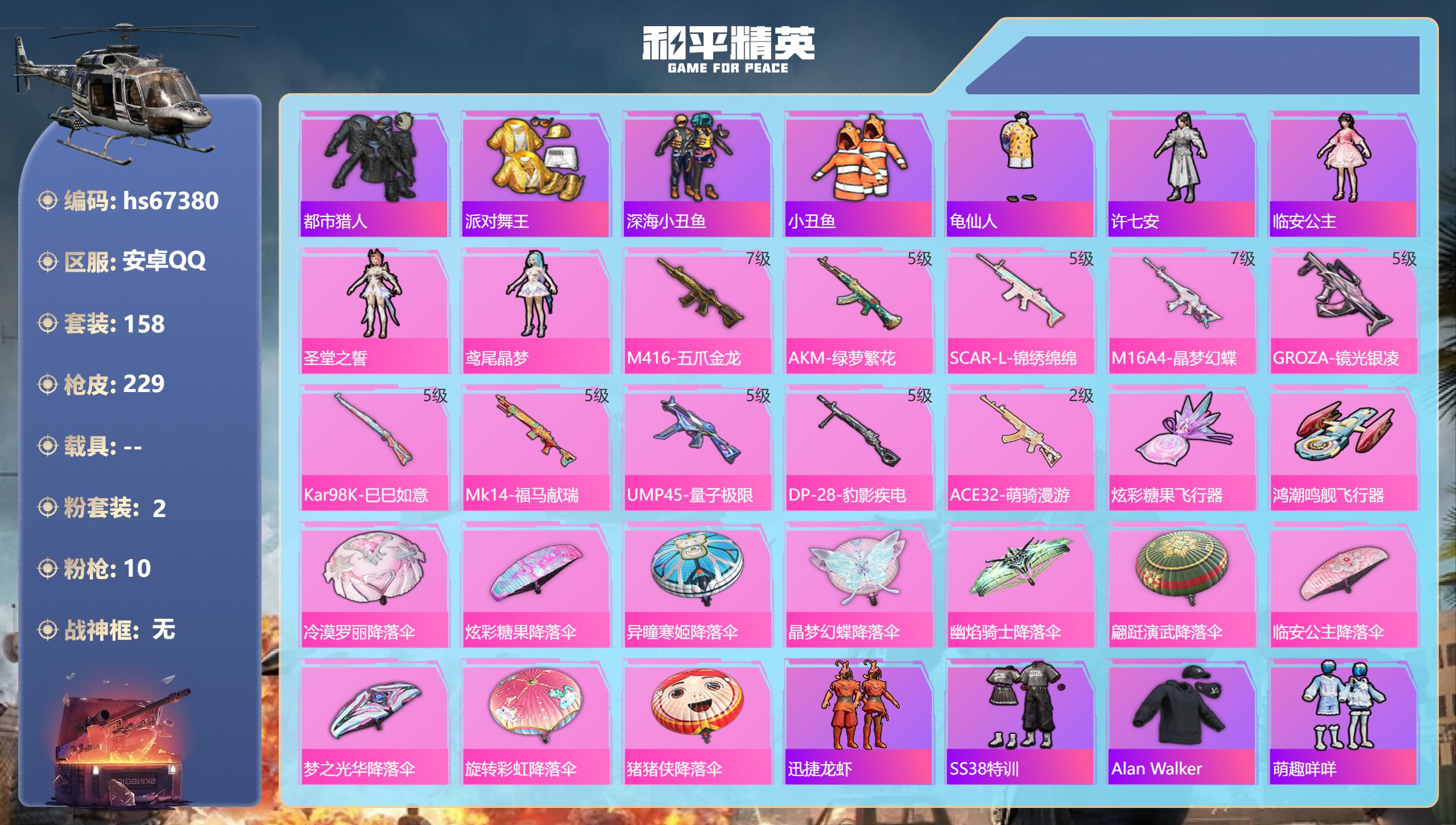 2粉装-4特效枪-66套装-83枪皮-4王牌印记-不朽星钻Ⅲ-22454热力值