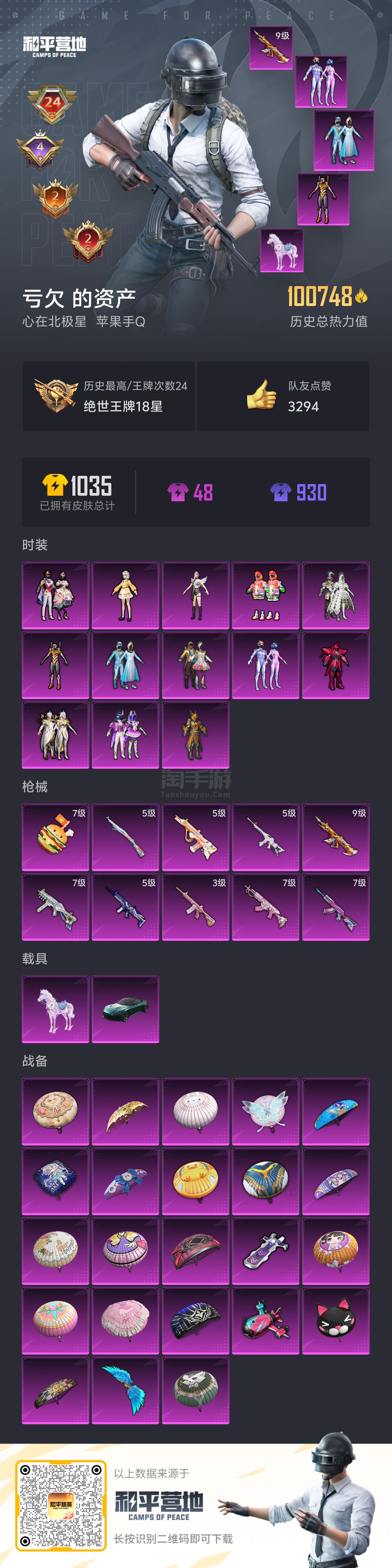 8载具 9升级枪 8粉装 3飞行器 106枪皮 69套装 49103热力 5印记 王牌