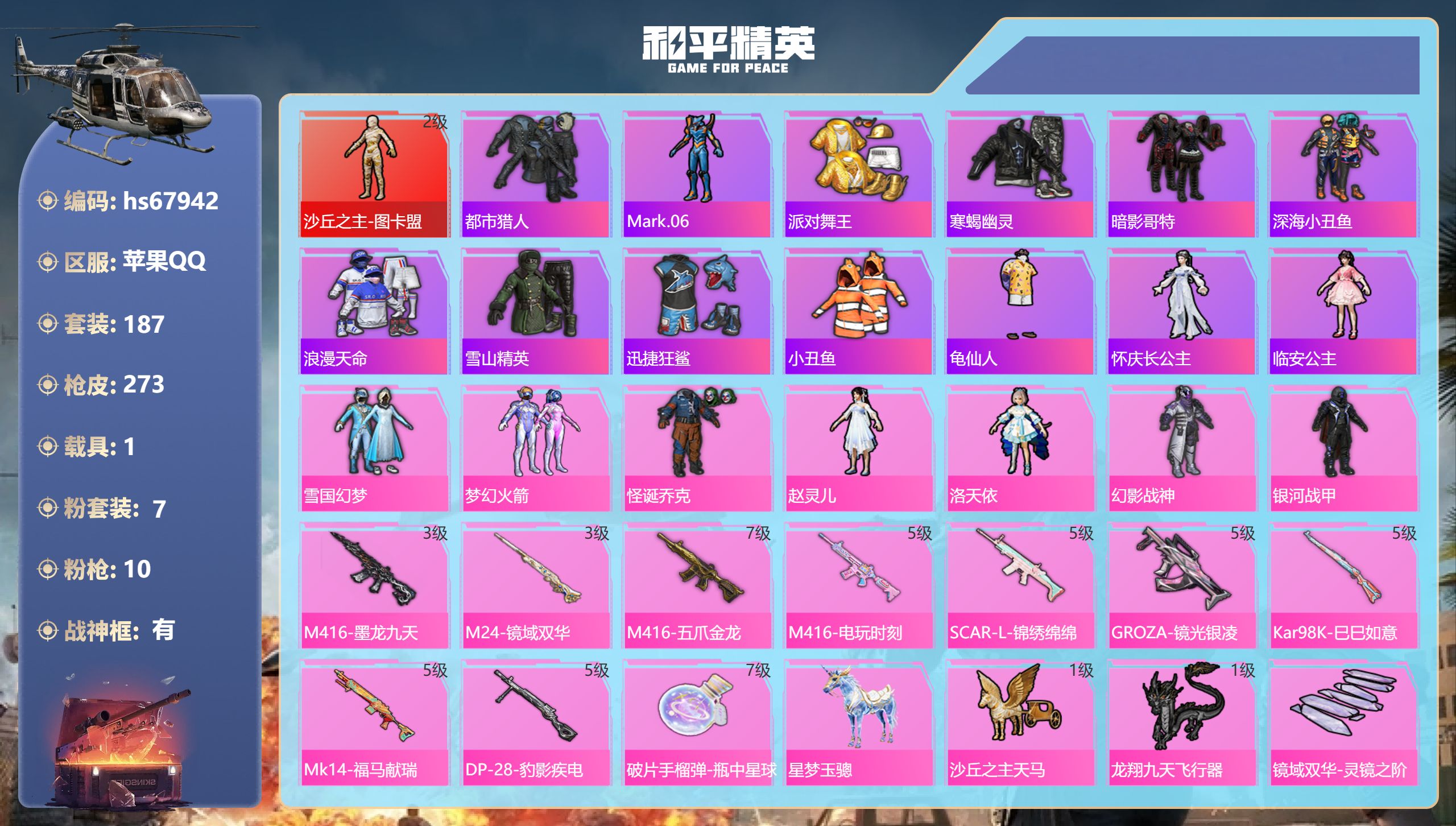【店主推荐捡漏号!可直接换绑】苹果 手Q-1粉装-5特效枪-2载具-0粉色飞行器