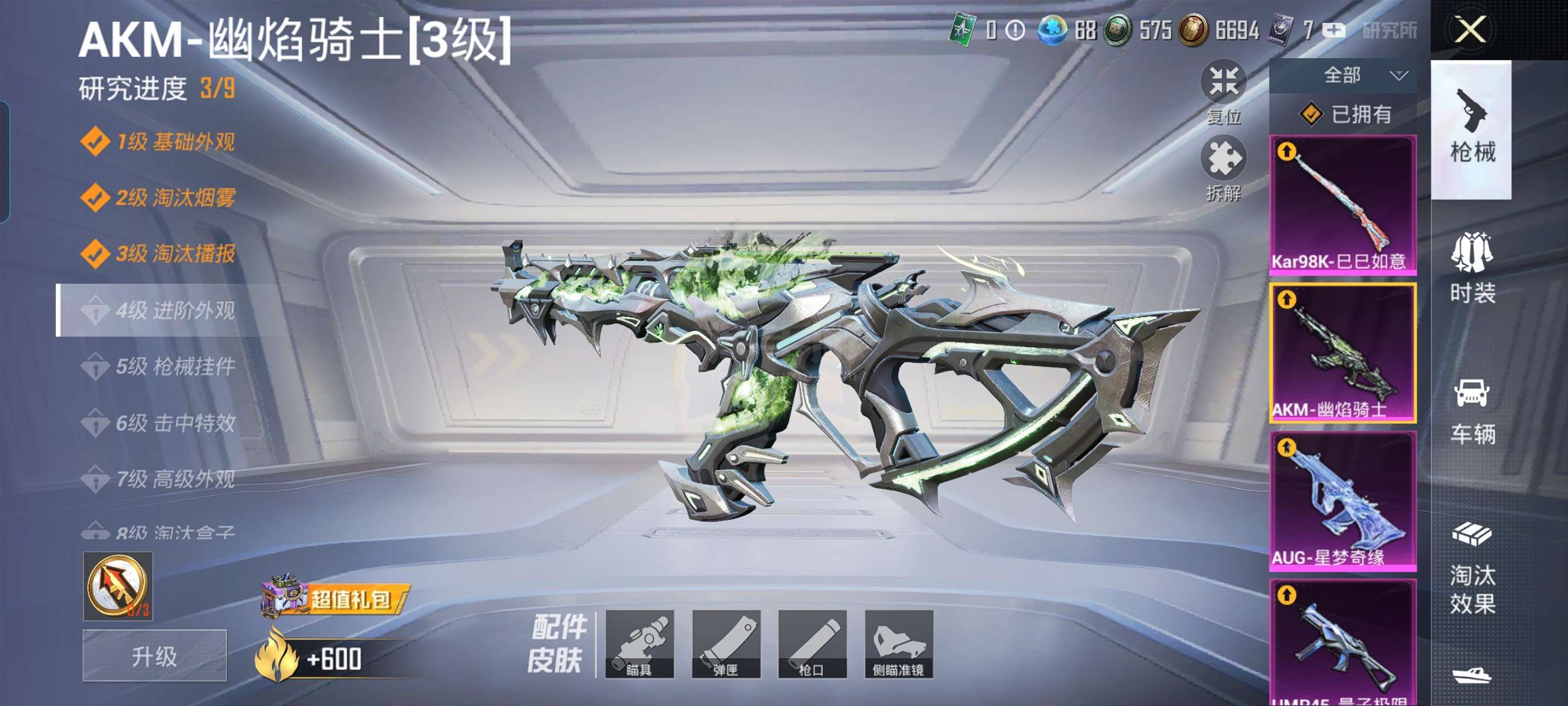 黄螳螂,小金鞋,火箭少女,小熊背包,三把九级枪,m4至情至圣,s嘎天蓬元帅,AK盖世英雄均7级以上