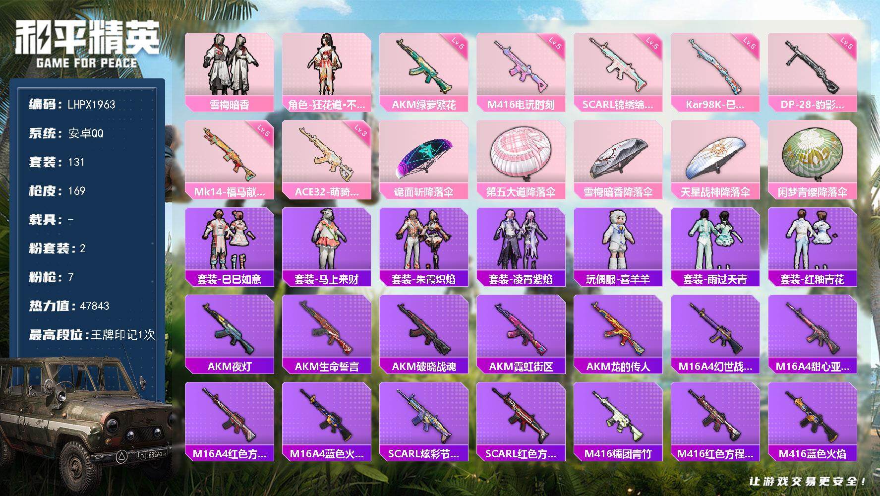 2粉装-4特效枪-1载具-26543热力值-4王牌印记-72套装-97枪皮