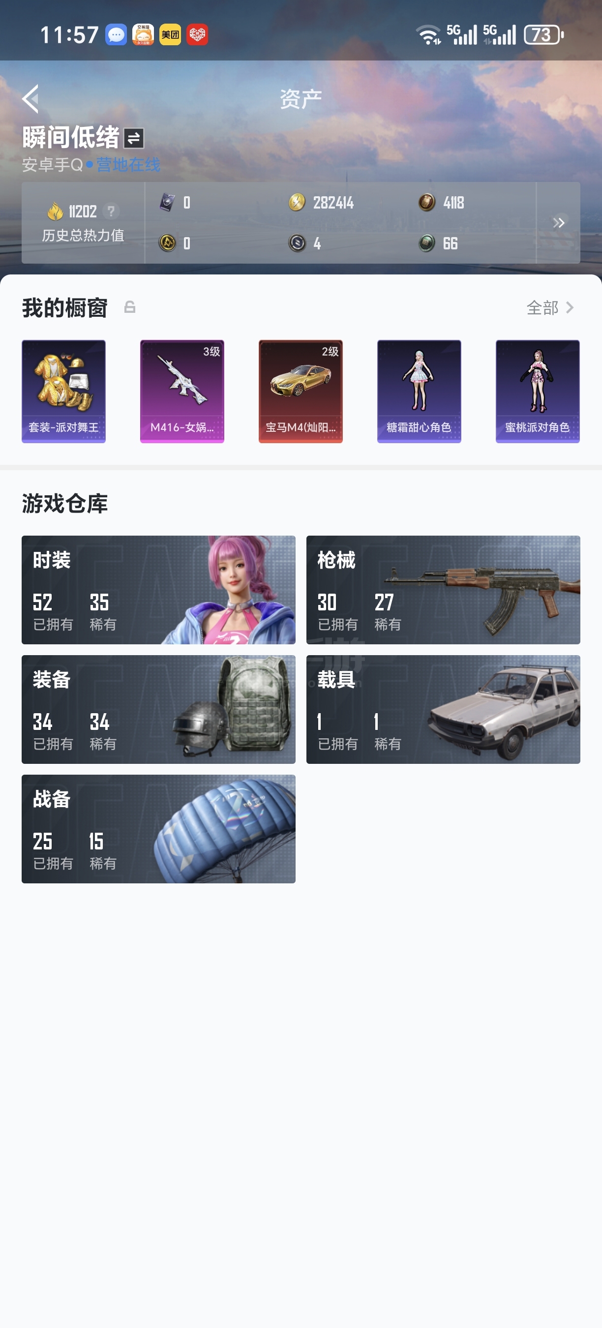 段位王牌一星、历史最高段位无敌战神(本赛季SS32)、王牌印记11次、93套装、127枪械、