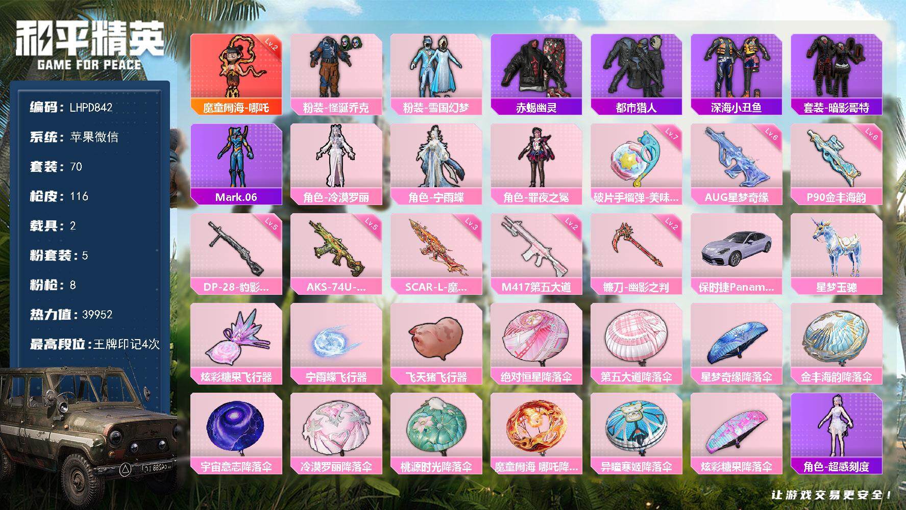 【店主推荐捡漏号!可直接换绑】苹果 微信-1神装-5粉装-8特效枪-2载具-3