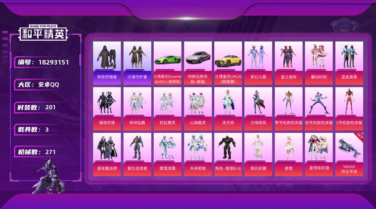 安卓 手Q-3粉装-6特效枪-1载具-4粉色飞行器-45801热力值-9王牌印记
