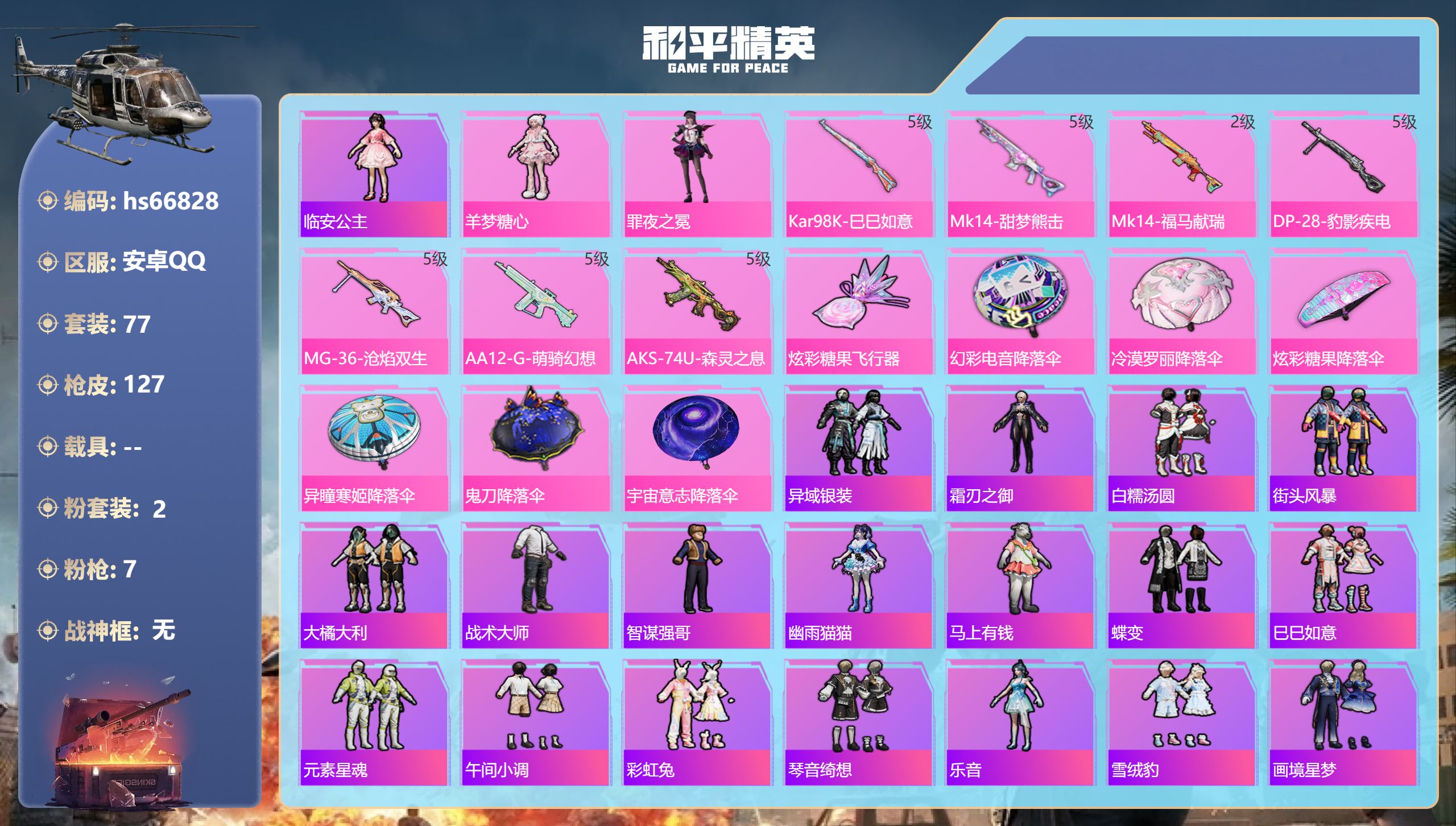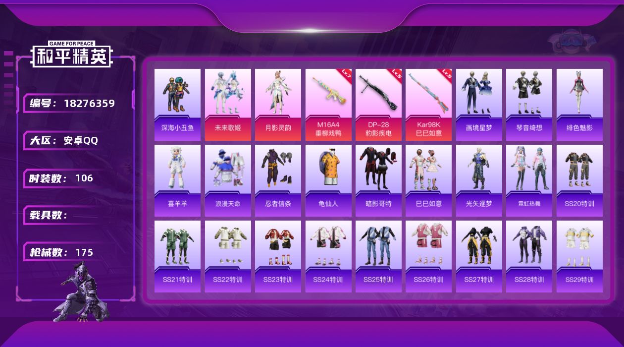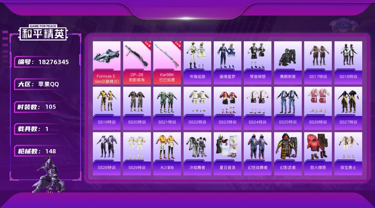 15王牌印记-6粉装-9特效枪-4载具-69761热力值-171套装