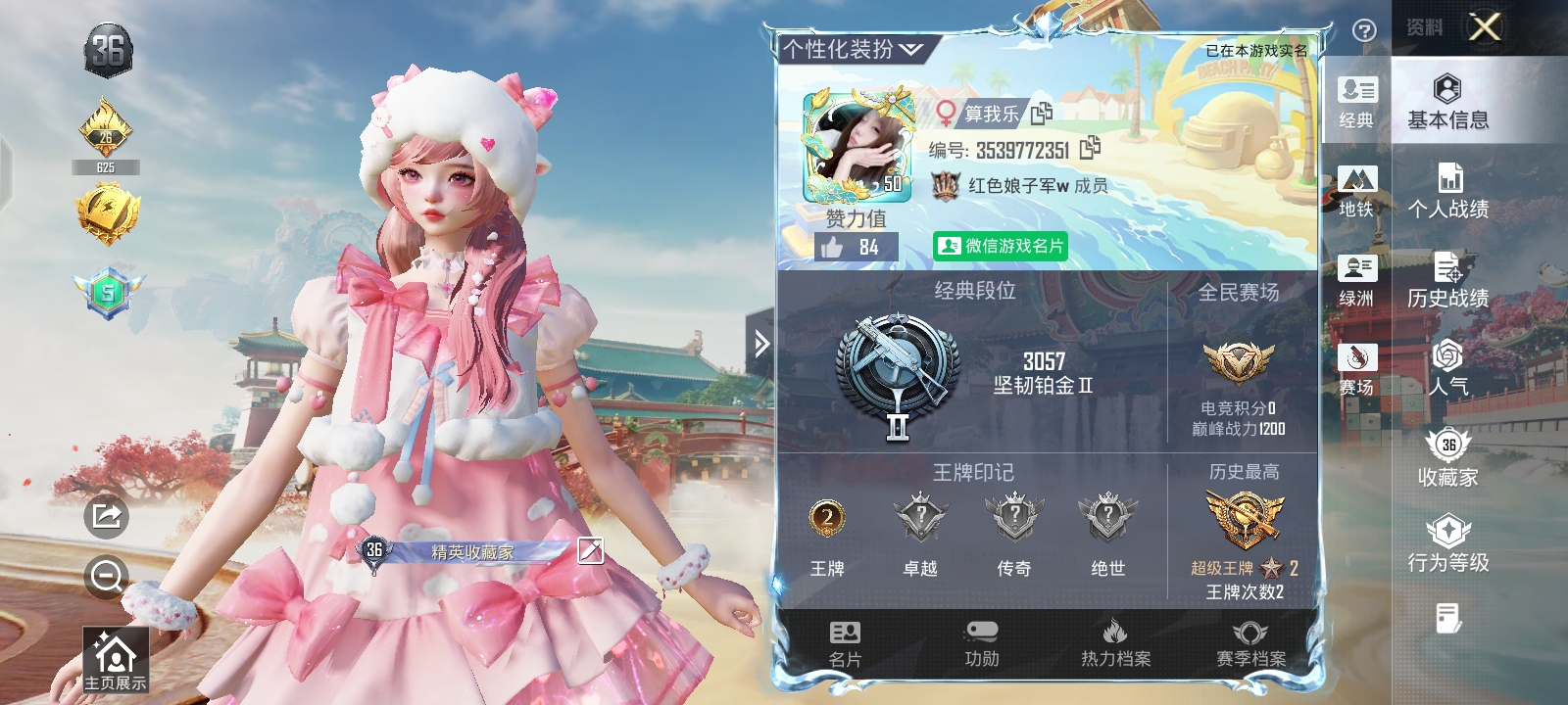 6王牌印记-3粉装-7特效枪-2载具-42265热力值-91套装-142枪皮-3卓越印记-1传奇印记