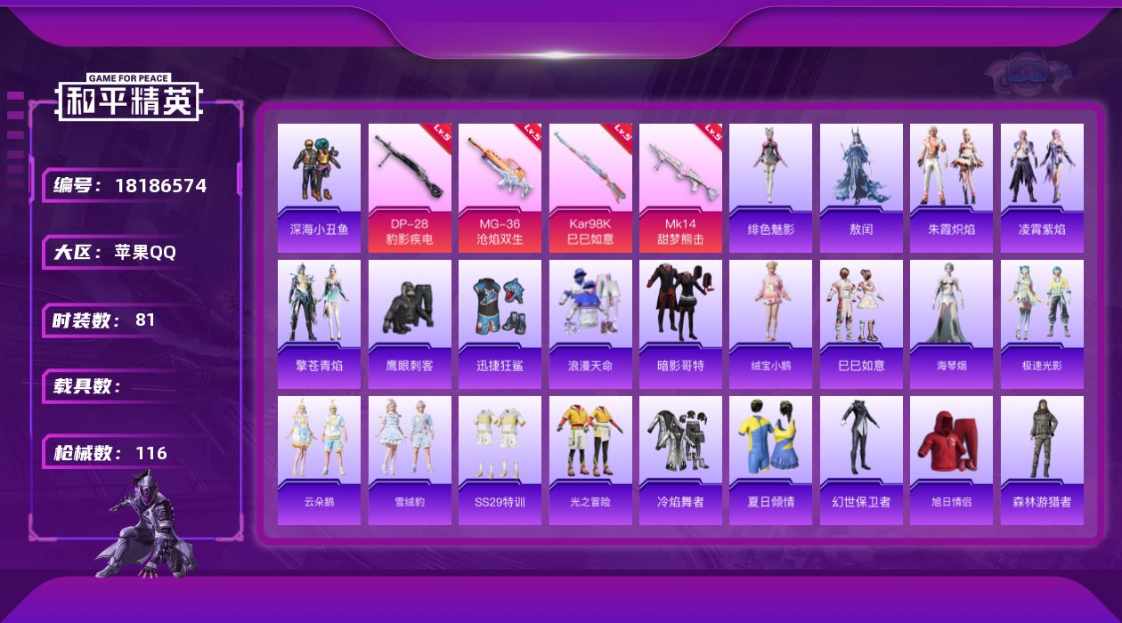 苹果手Q-18王牌印记-有战神框-1红装-10粉装-9特效枪-3