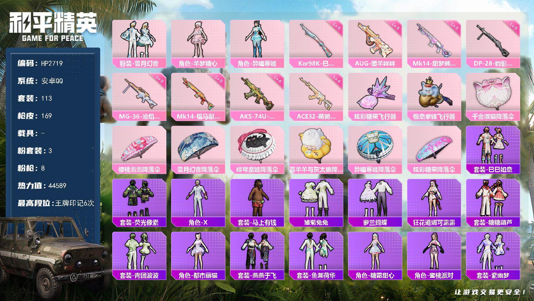113套装/枪械8/装备216/战备132/王牌印记6/热力值44589/