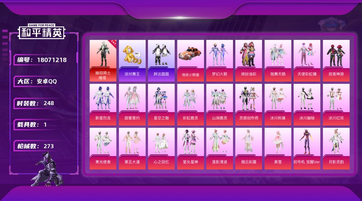 16粉装-13特效枪-2载具-7粉色飞行器-109997热力值-16王牌印记-252套装-351枪皮