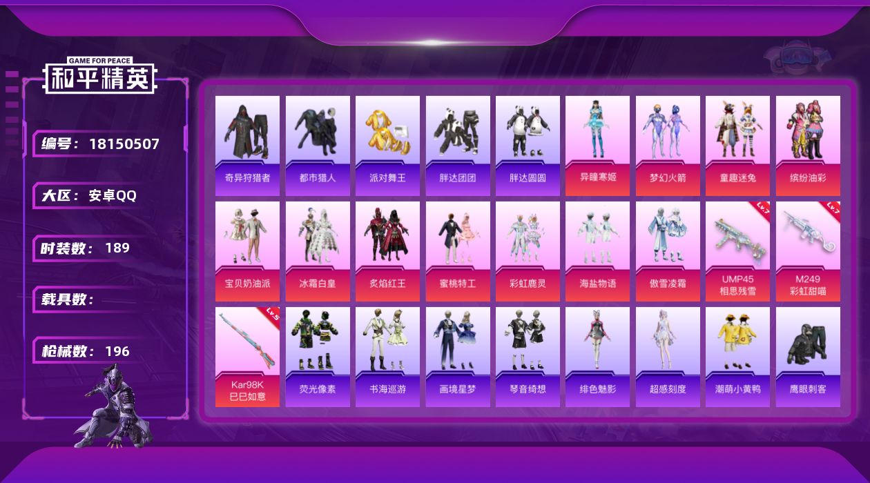 1神装-19粉装-25特效枪-4载具-15粉色飞行器-148408热力值-17王牌印记-286套装-436枪皮