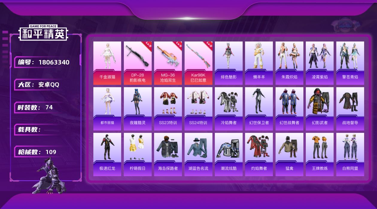 安卓 手Q-2粉装-5特效枪-0载具-0粉色飞行器-26648热力值-4王牌印记