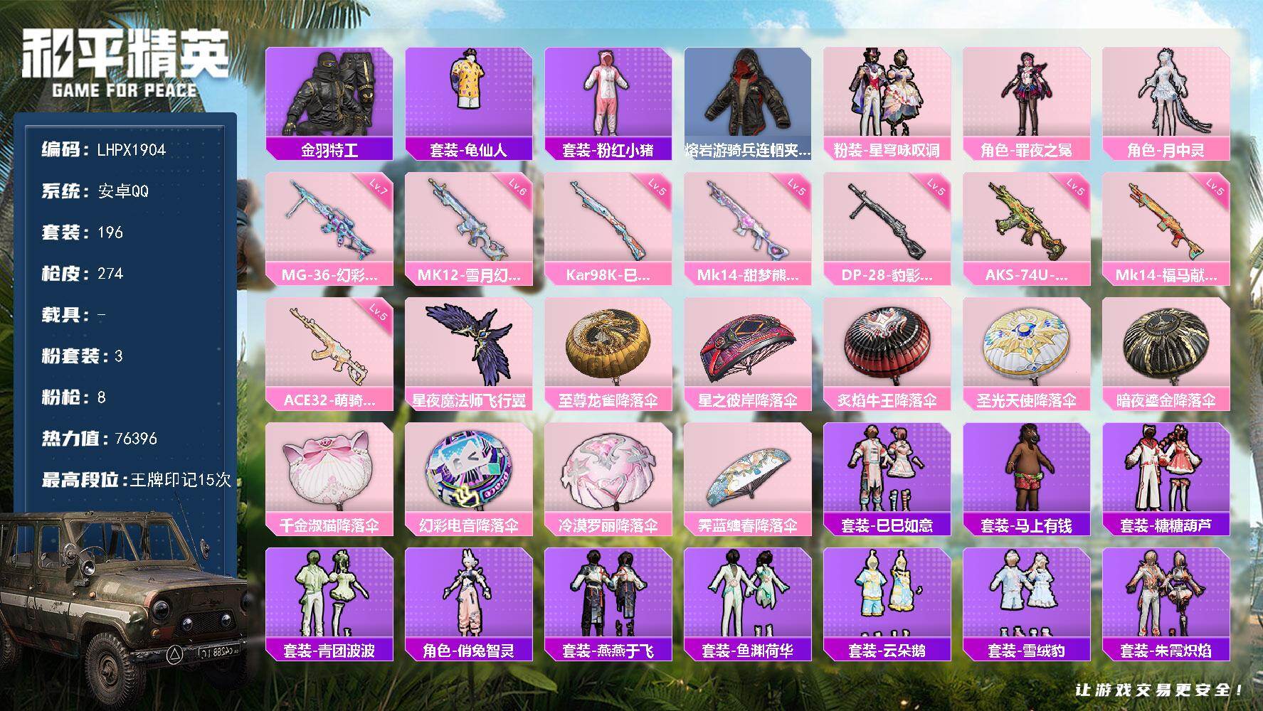 3粉装-8特效枪-1粉色飞行器-76396热力值-15王牌印记-196套装-274枪皮