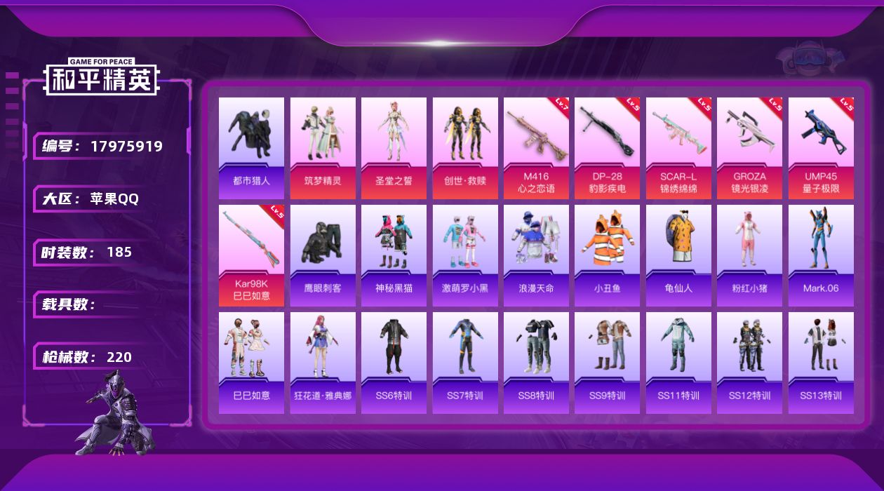 2粉装-2特效枪-1载具-44217热力值-4王牌印记-127套装-152枪皮