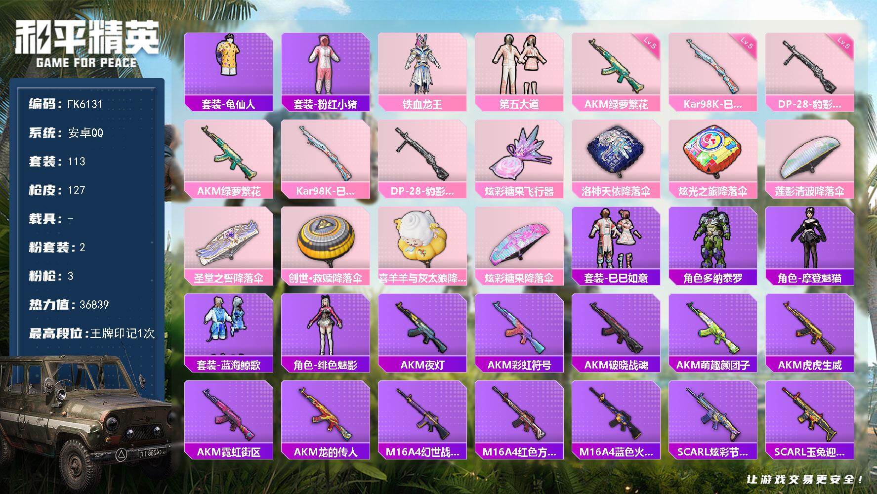 【FK6131】113套装/枪械3/装备141/战备98/王牌印记1/热力值3
