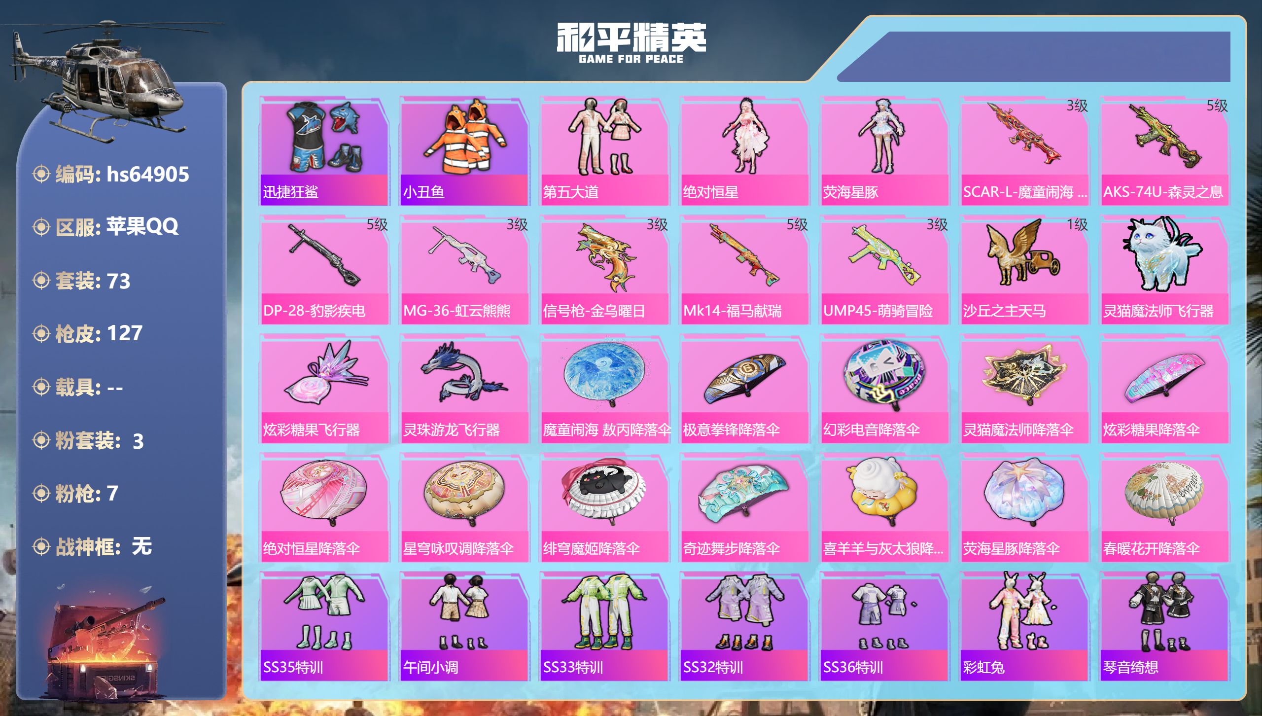 5王牌印记-11粉装-8特效枪-1载具-65216热力值-130套装-