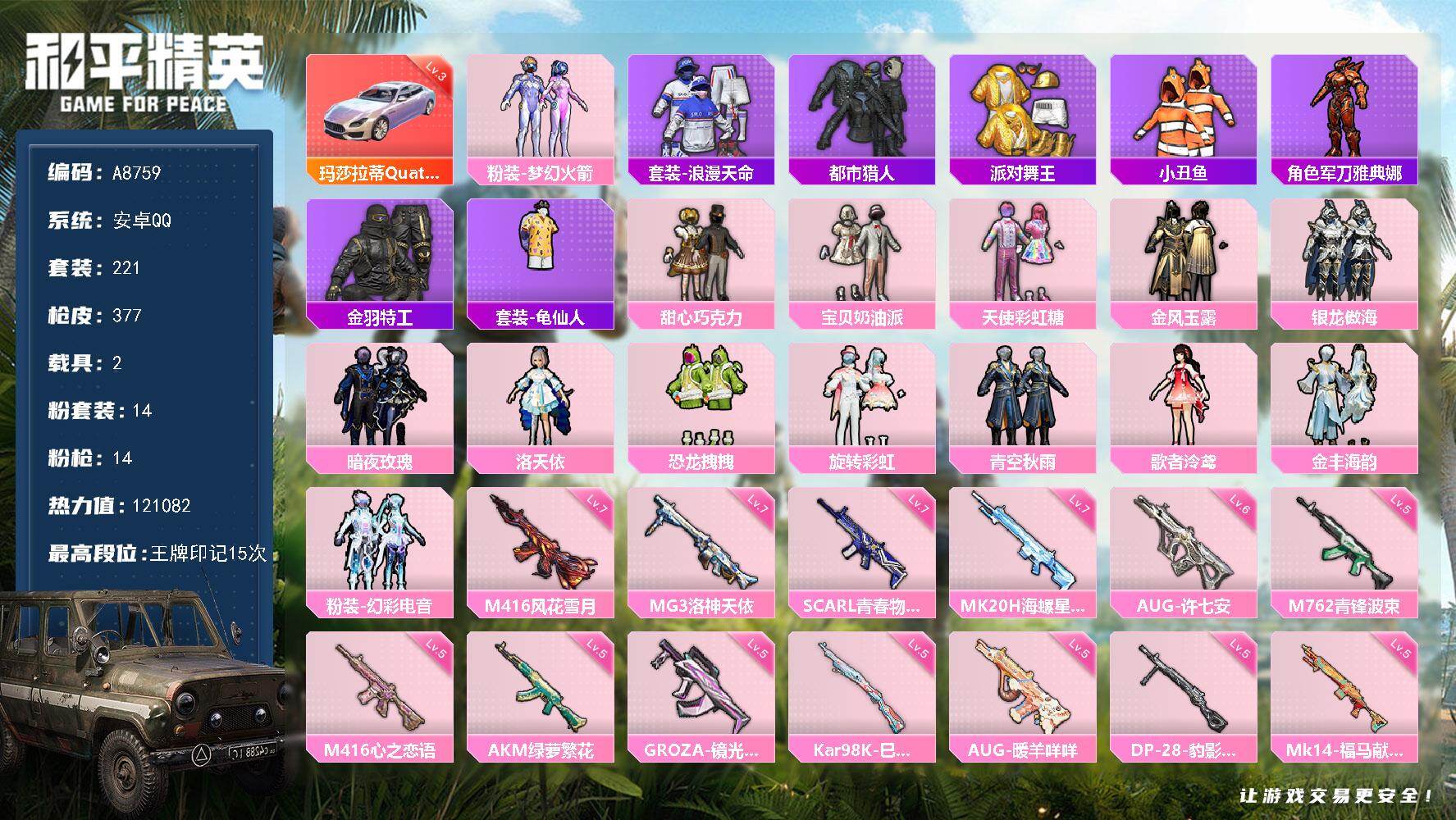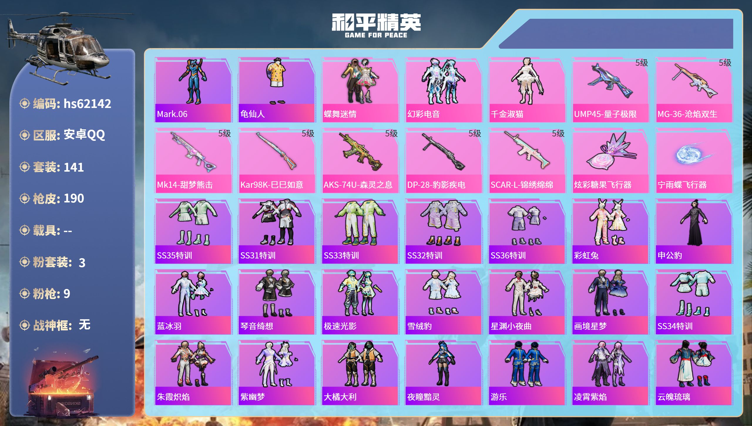 安卓手Q-0王牌印记-2粉装-6特效枪-22246热力值-43套