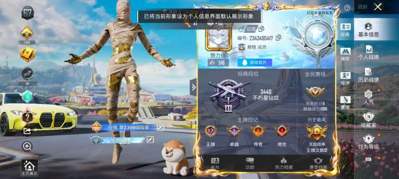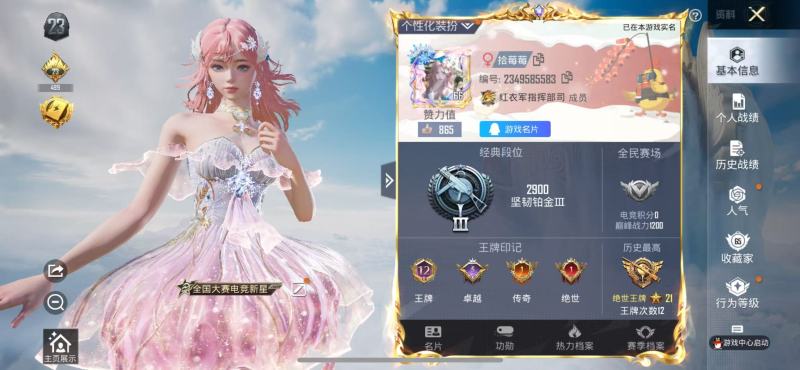 安卓 手Q-0粉装-2特效枪-0载具-0粉色飞行器-7845热力值-2王牌印记