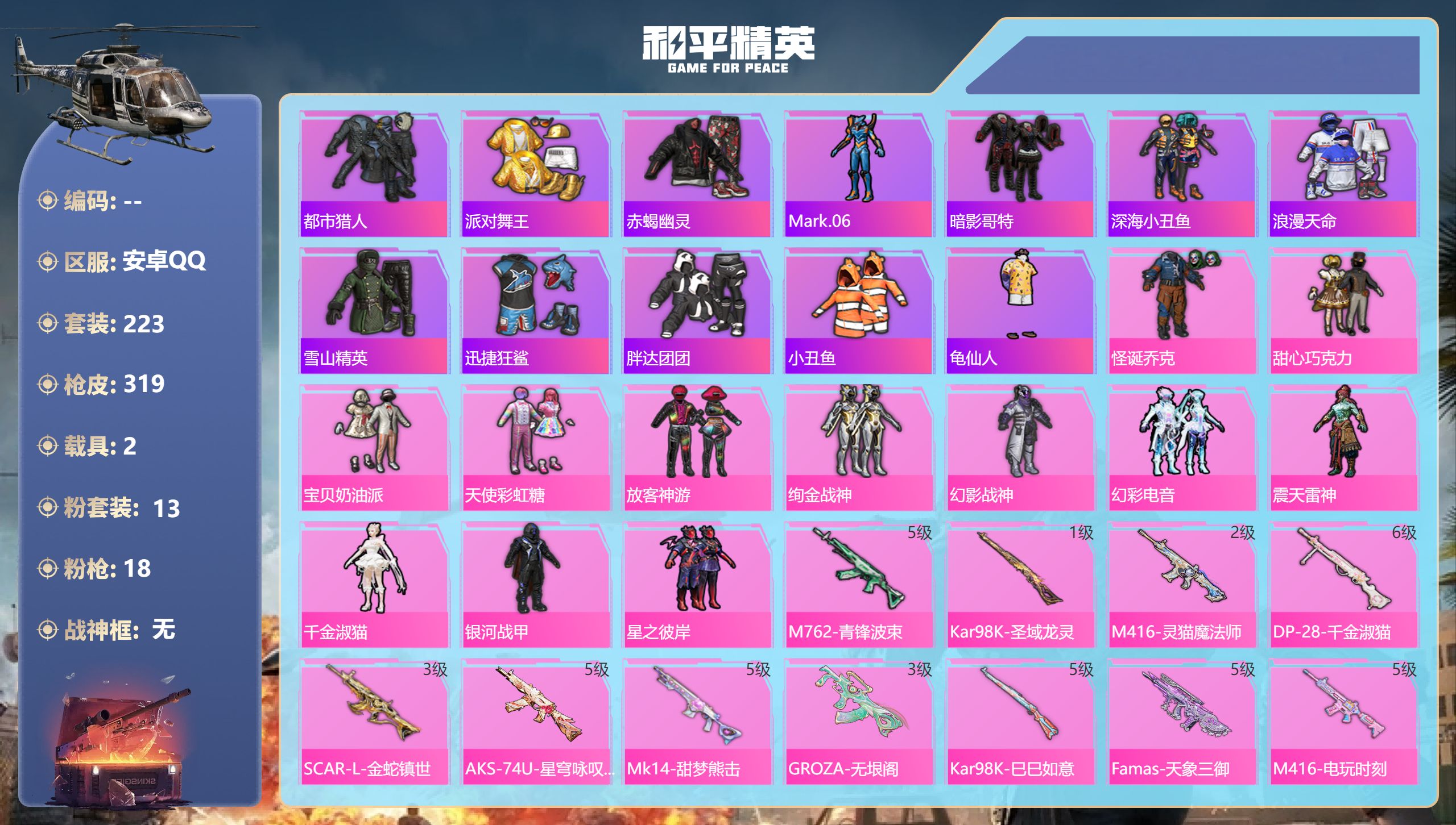 安卓手Q-7王牌印记-3粉装-4特效枪-23023热力值-59套