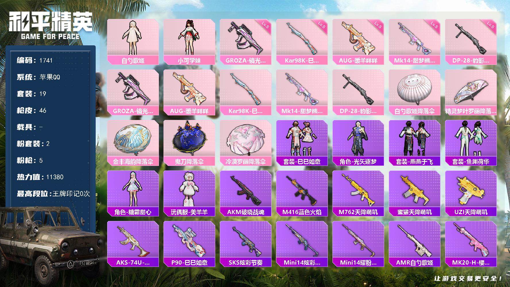 安卓 手Q-4神装-17粉装-15特效枪-2载具-12粉色飞行器-115067