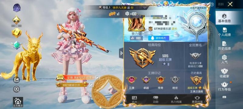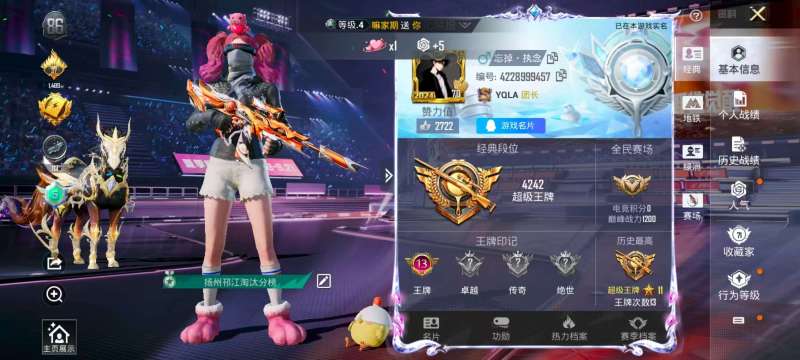 hs45255 安卓手Q-19王牌印记-有战神框-9粉装-9特效枪-4载具-95399热力值-248