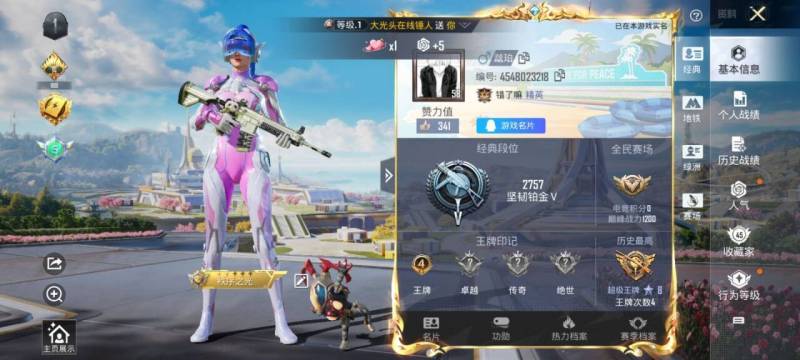 安卓 手Q-6粉装-4特效枪-0载具-1粉色飞行器-47348热力值-8王牌印