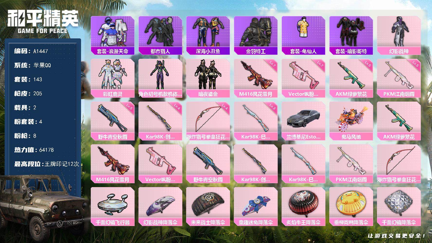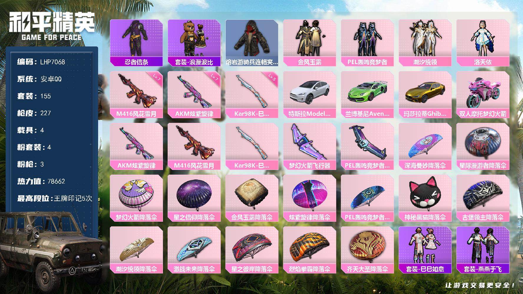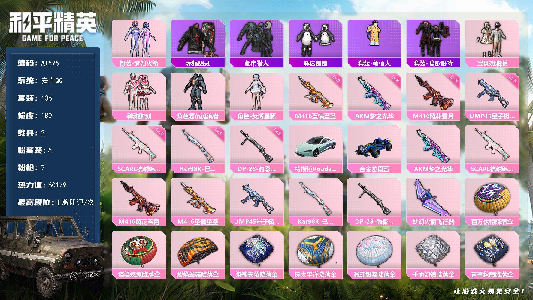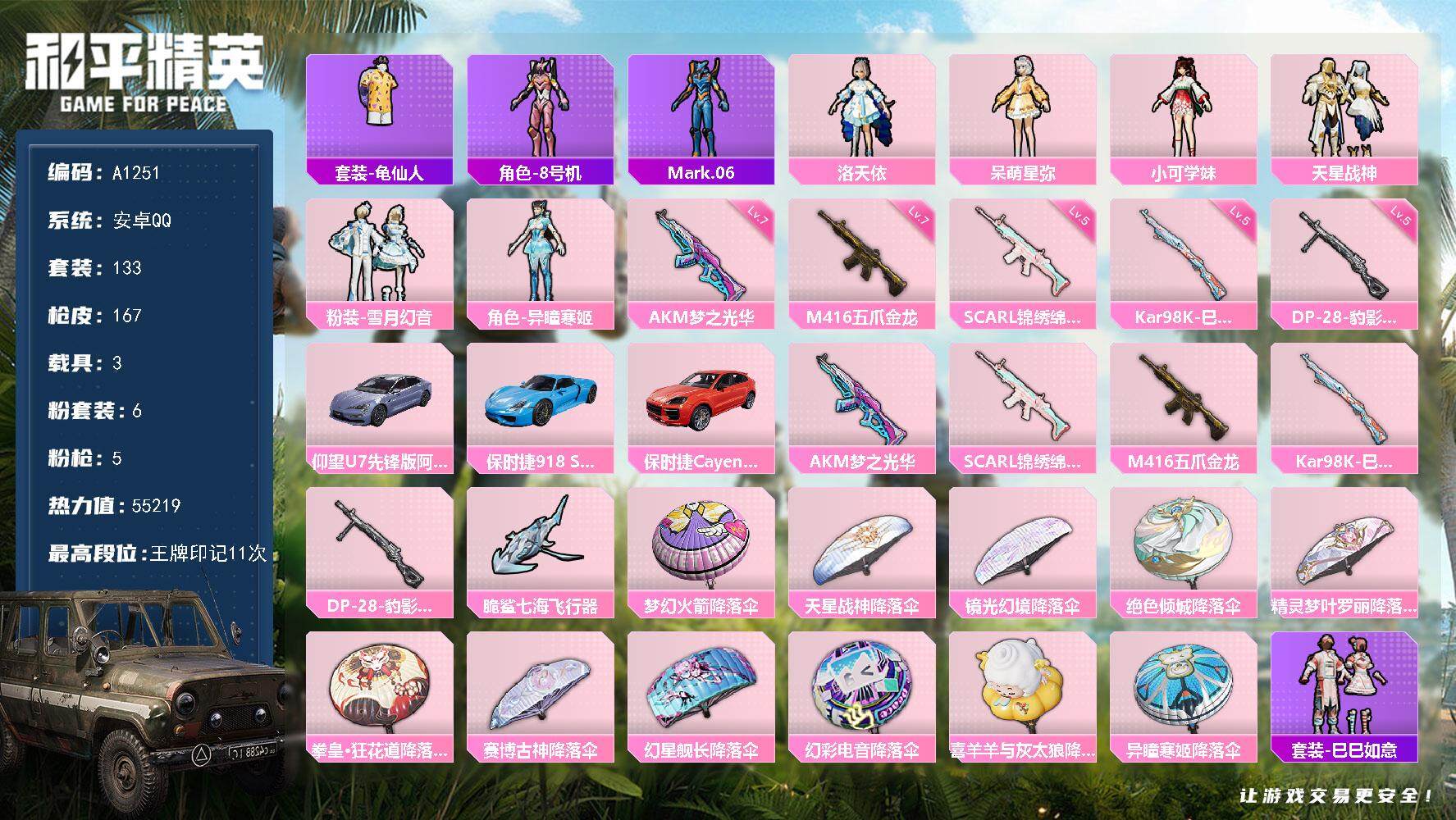 可二次【店主推荐捡漏号!可直接换绑】 安卓 手Q-1粉装-0特效枪-0载具-0