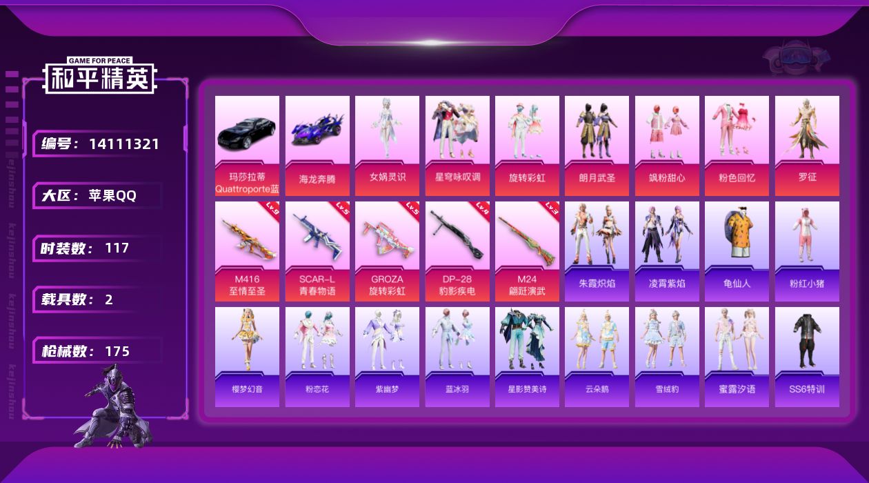 安卓 手Q-2粉装-5特效枪-0载具-1粉色飞行器-25299热力值-2王牌印