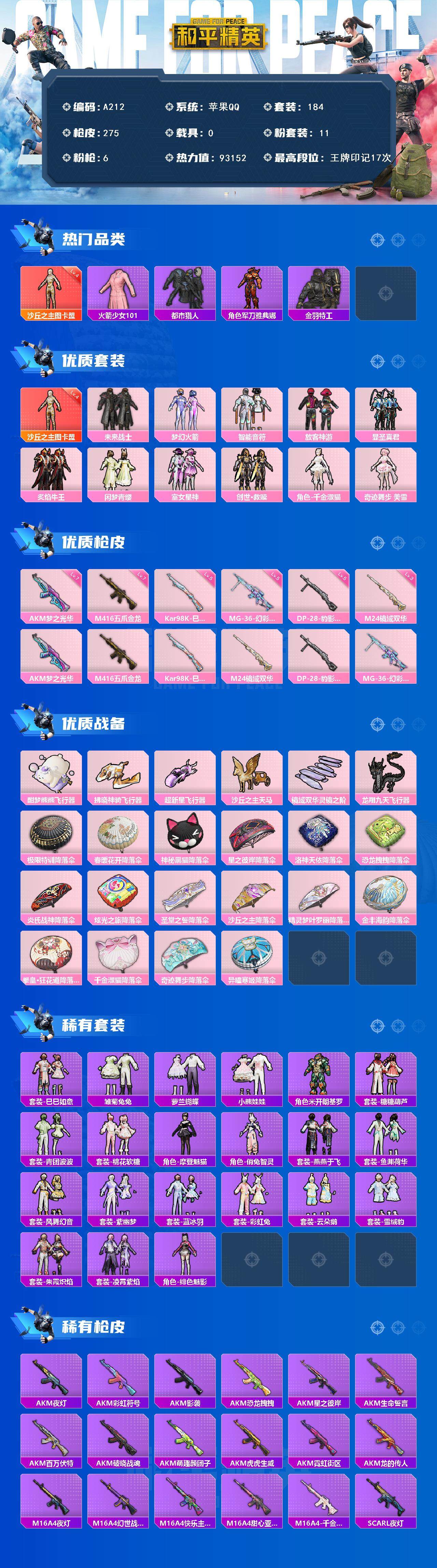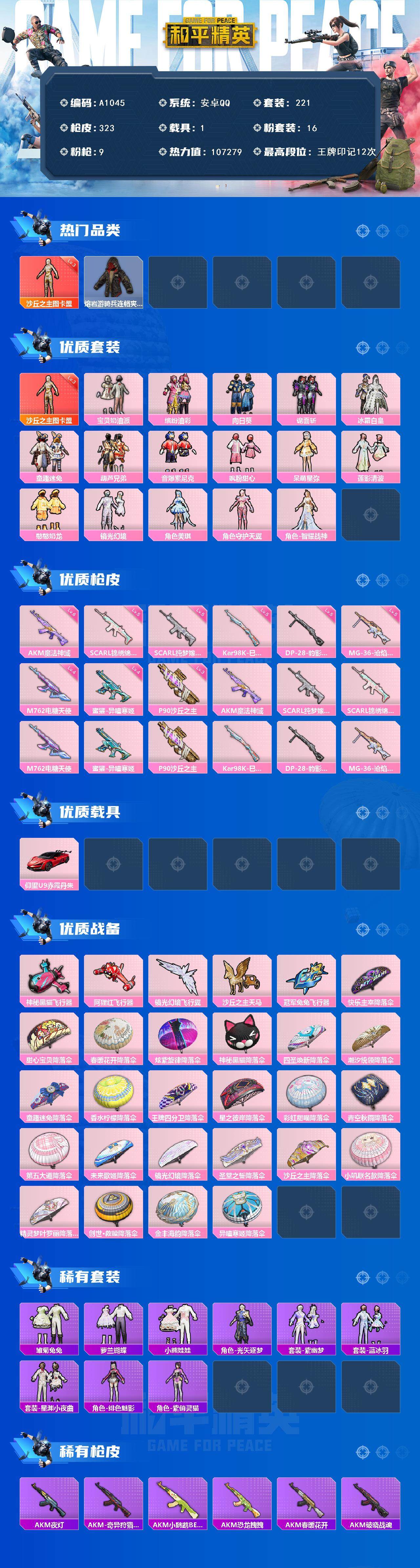 87435 可二次 等级62 117套装 175枪皮 历史最高超级王牌13金星 8王牌印记 热力值5