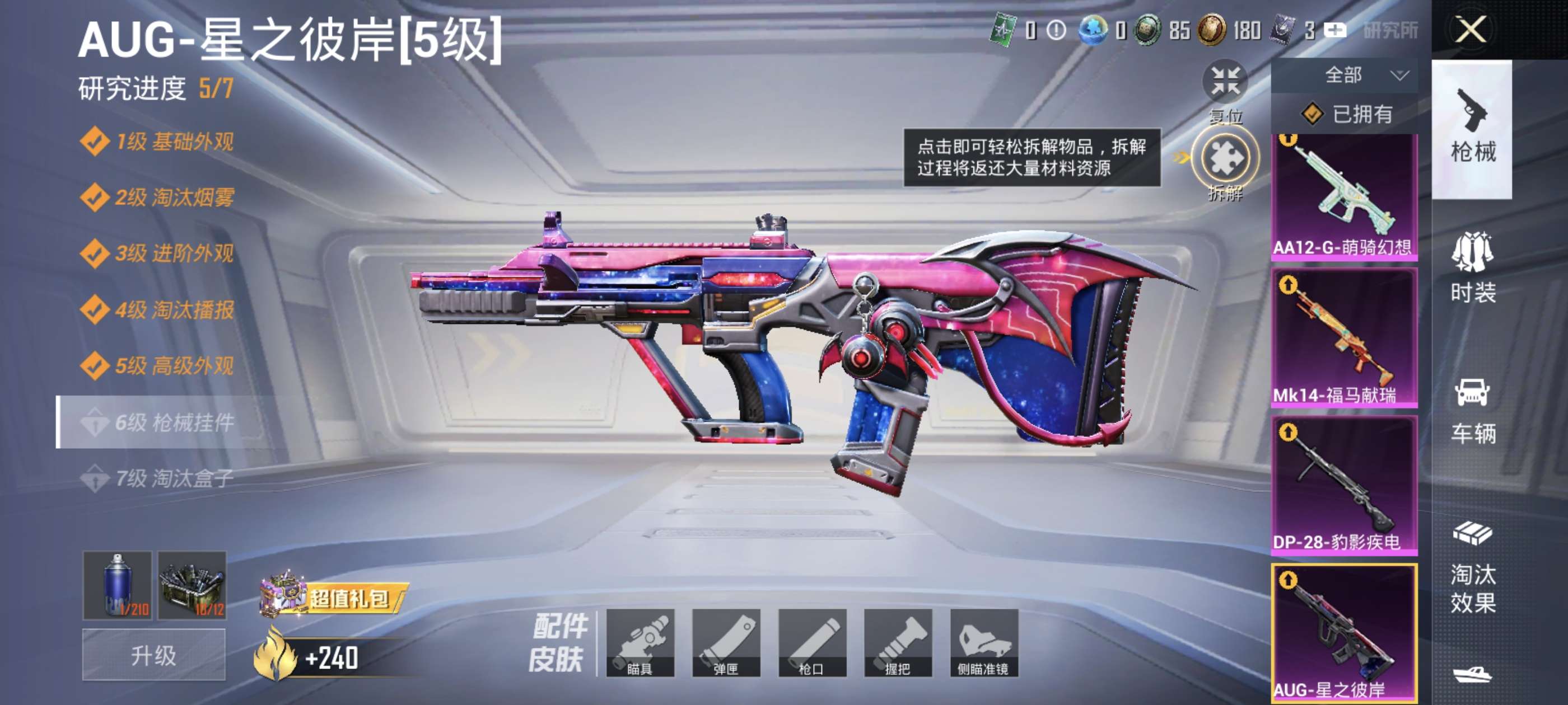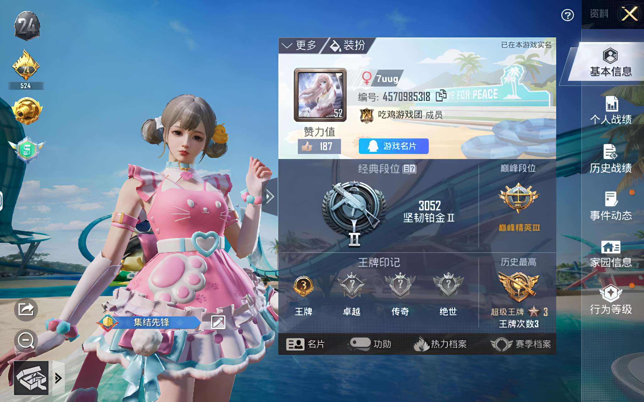 安卓 手Q-5粉装-2特效枪-1载具-5粉色飞行器-34137热力值-6王牌印