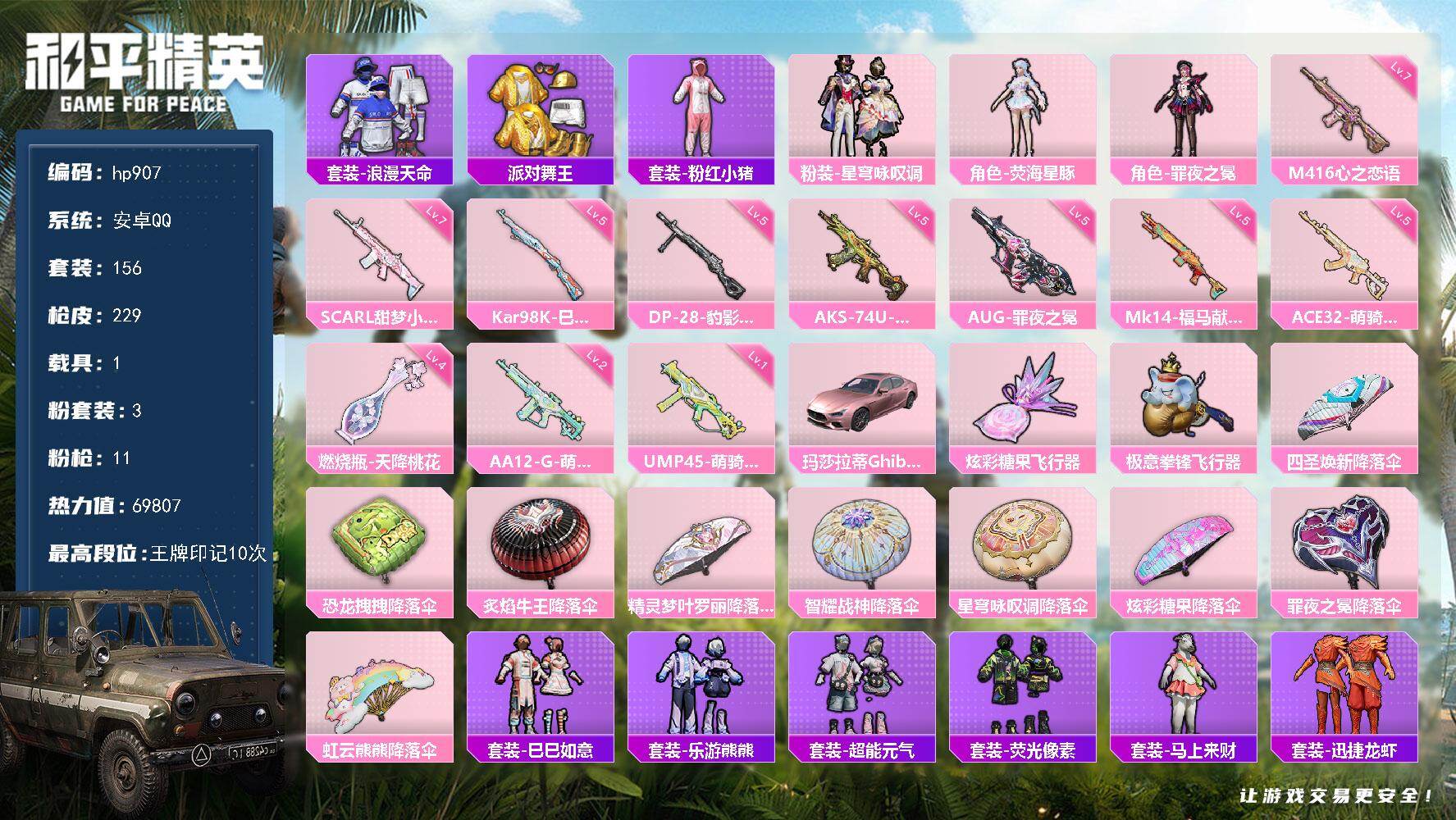 安卓 手Q-3粉装-11特效枪-1载具-2粉色飞行器-69807热力值-10王