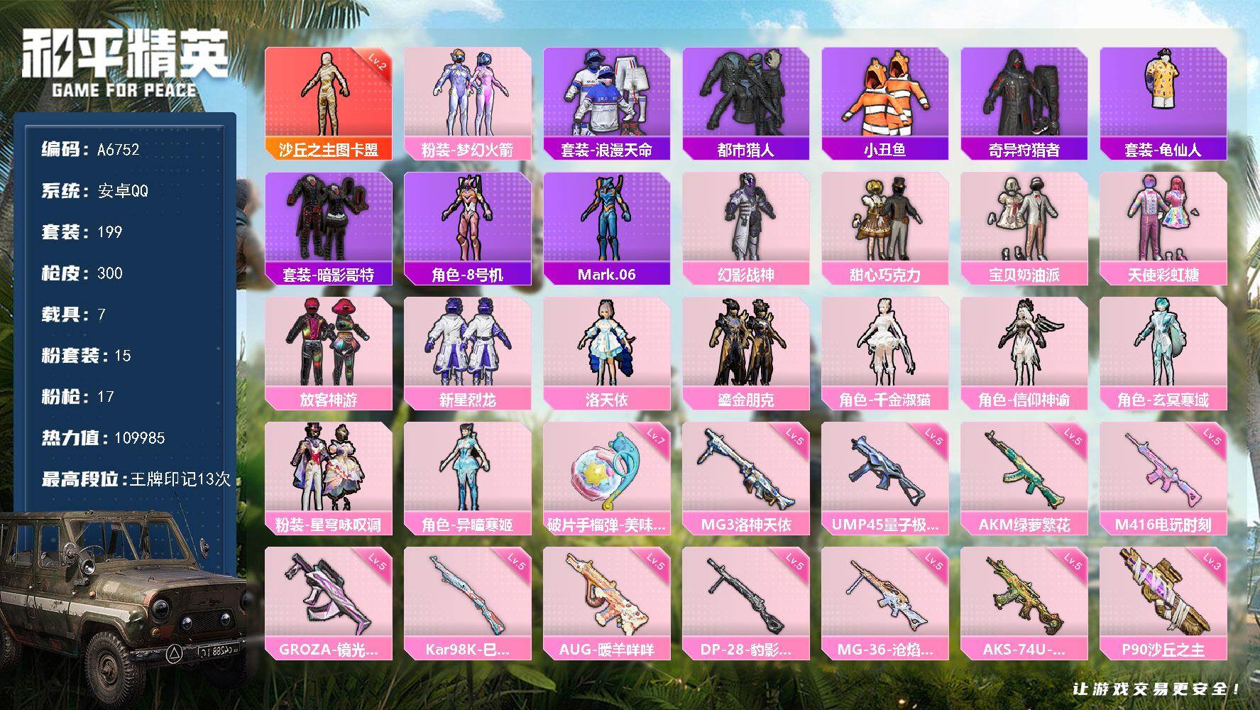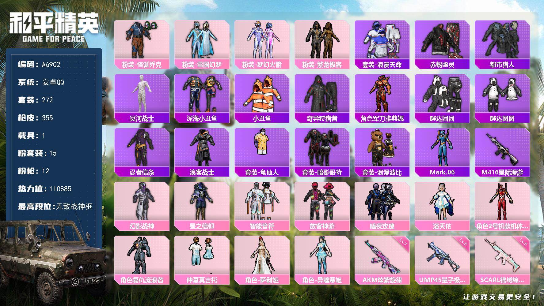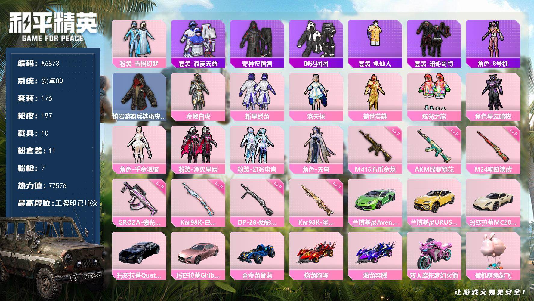 安卓 手Q-4神装-17粉装-15特效枪-2载具-12粉色飞行器-115067