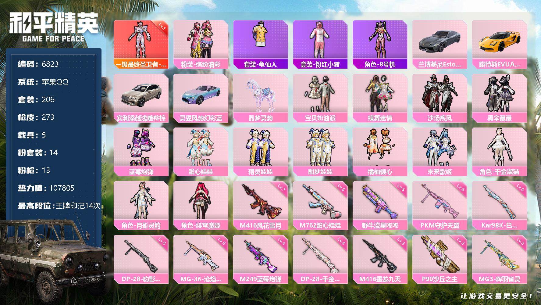 【6823】14粉装-13特效枪-5载具-107805热力值-14印记-206