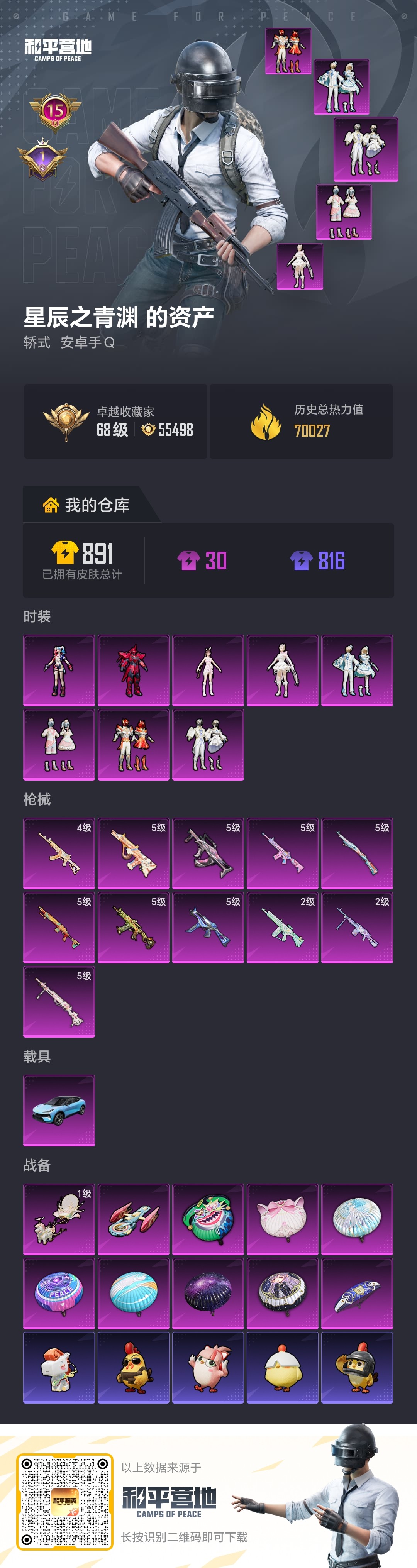 hs61641 苹果手Q-16王牌印记-7粉装-9特效枪-2载具-58267热力值-138套装-18