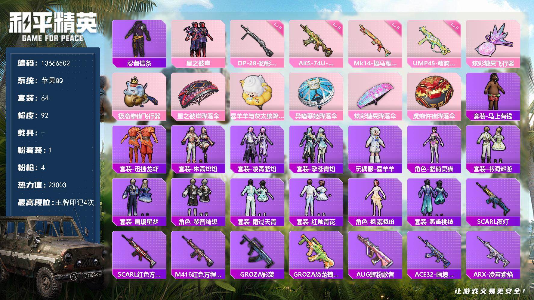 64套装/枪械4/装备115/战备87/王牌印记4/热力值23003/五级UM