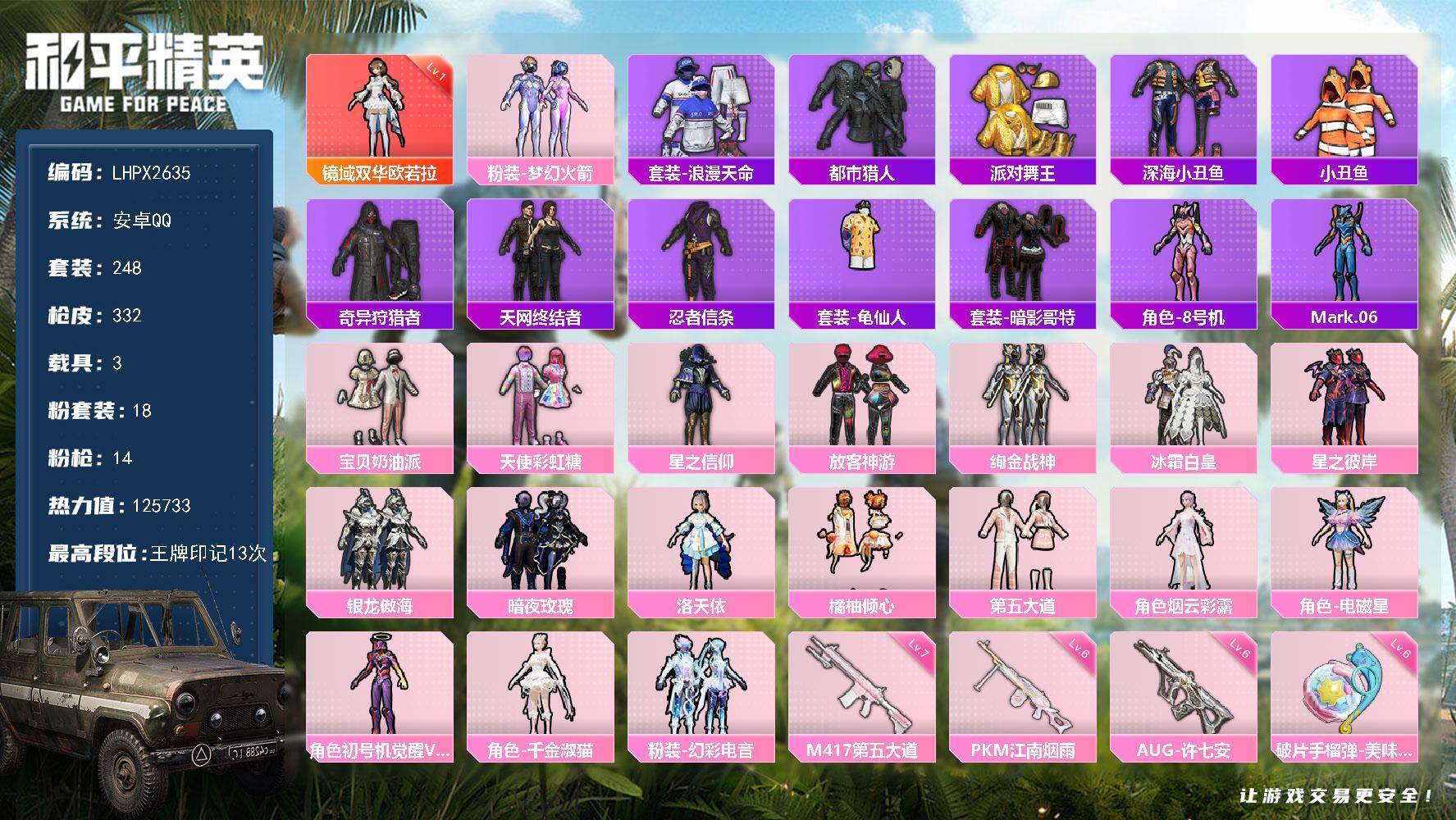 【战神框 3级图卡盟2红装10粉装13特效枪4载具 可秒换
