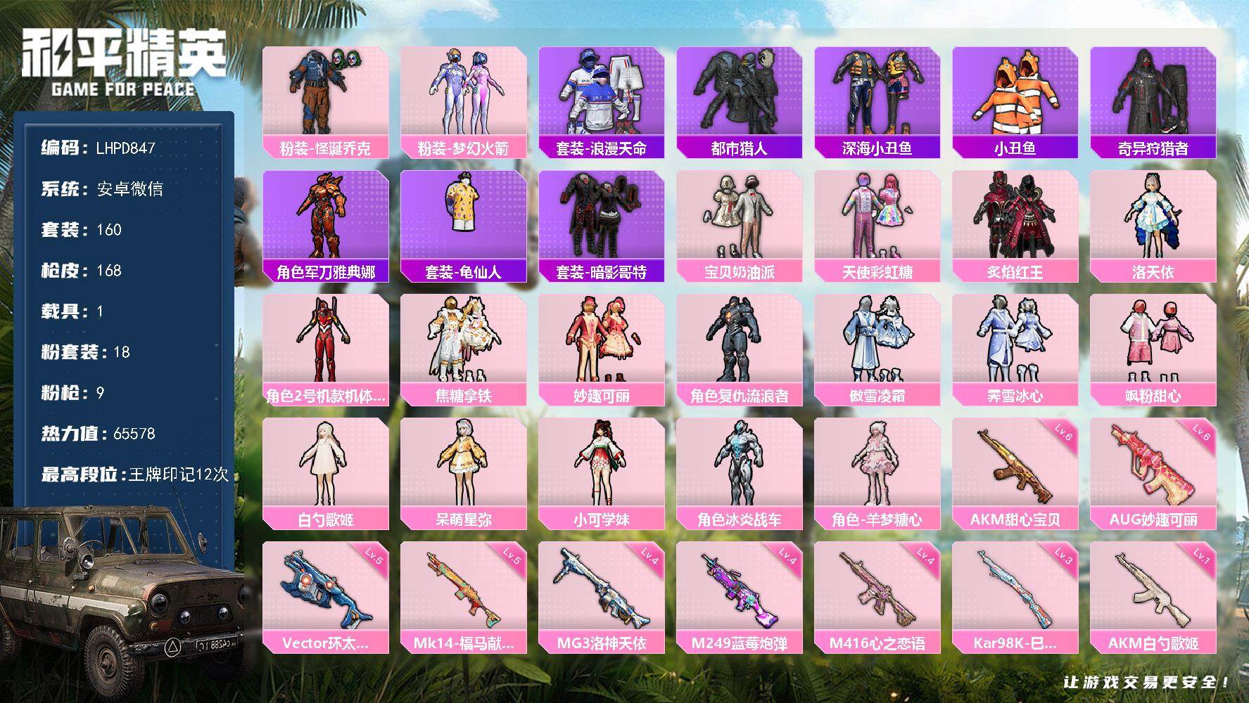 安卓 手Q【幻彩电音 满级甜心宝贝AKM】2粉装-5特效枪-0载具-1粉色飞行器